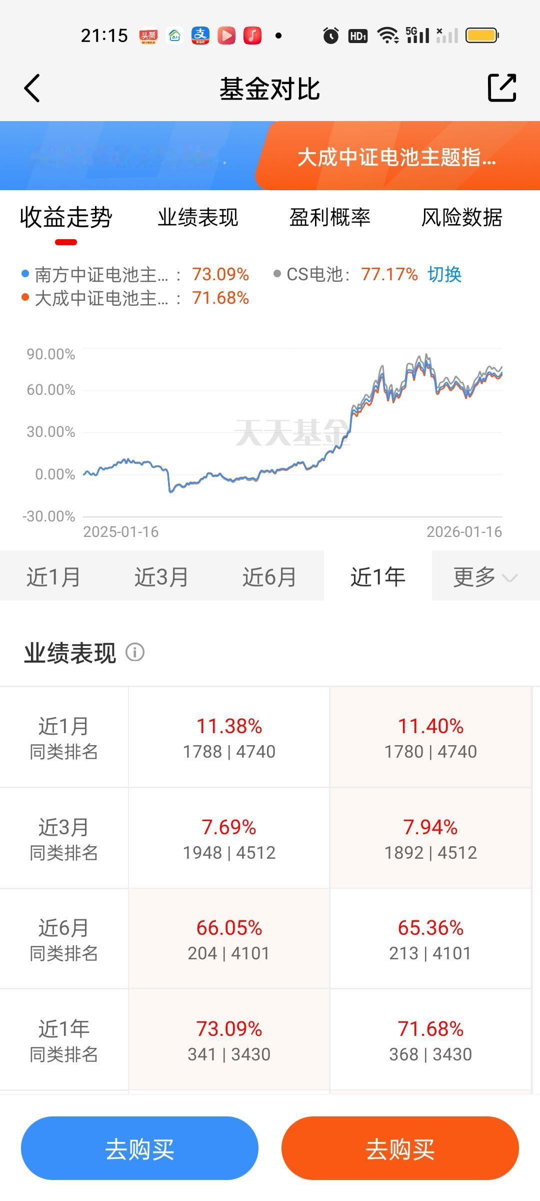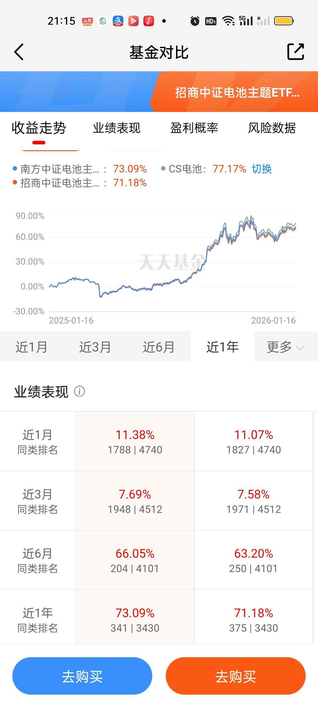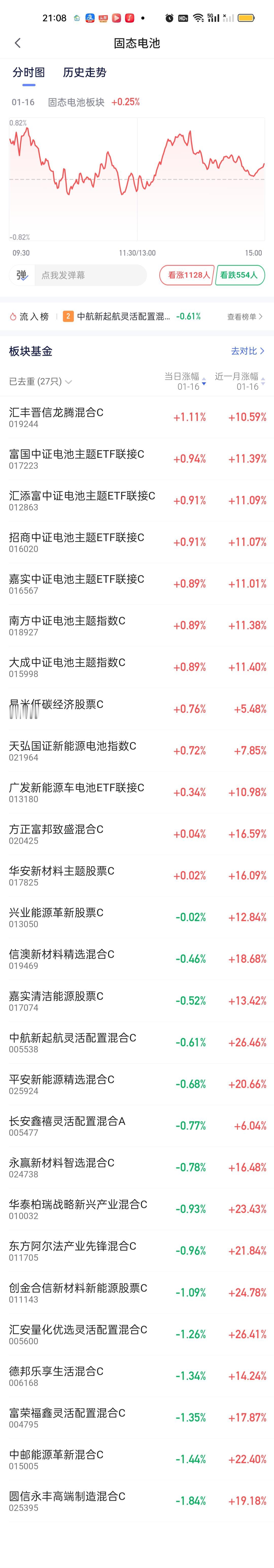 固态电池必须引起重视了,不仅仅国家部委发话了,更在于目前市场上唯一的主线商业航天处在深度调整期,这个调整可能是一周,也可以是一个月,现在市场是严重缺乏主线的。这个时候资金从商业航天巨幅流出六七千亿,需要有板块来承接。当然这7000亿迟早也会回流到商业航天,这个毋庸置疑! 固态电池板块目前指数型和ETF联接型基金合计有8只,也就是我们说的七免型基金,买入免费,持有7天赎回免费。后面再说另外19只股票型基金。 南方的优势延续到了现在,也有五六个月了,这期间一直表现足够稳定。近一个月和近三个月只有富国中证电池和大成中证电池收益率超过了它。老对手汇添富和它差距其实并不大,只有0点几,换不换其实体感差别并不大。