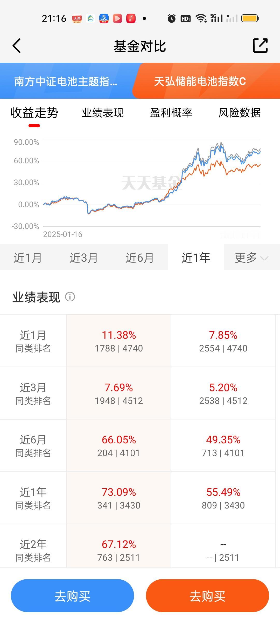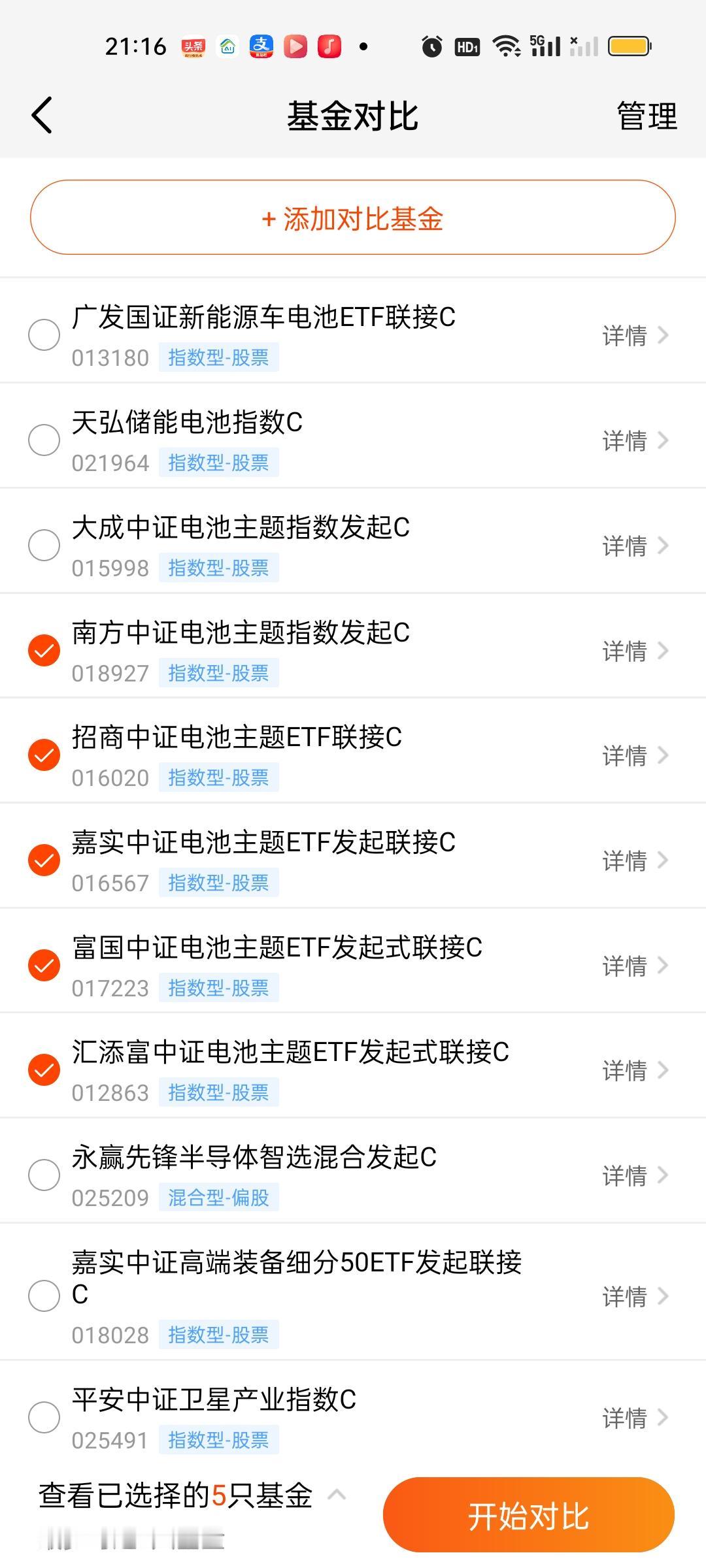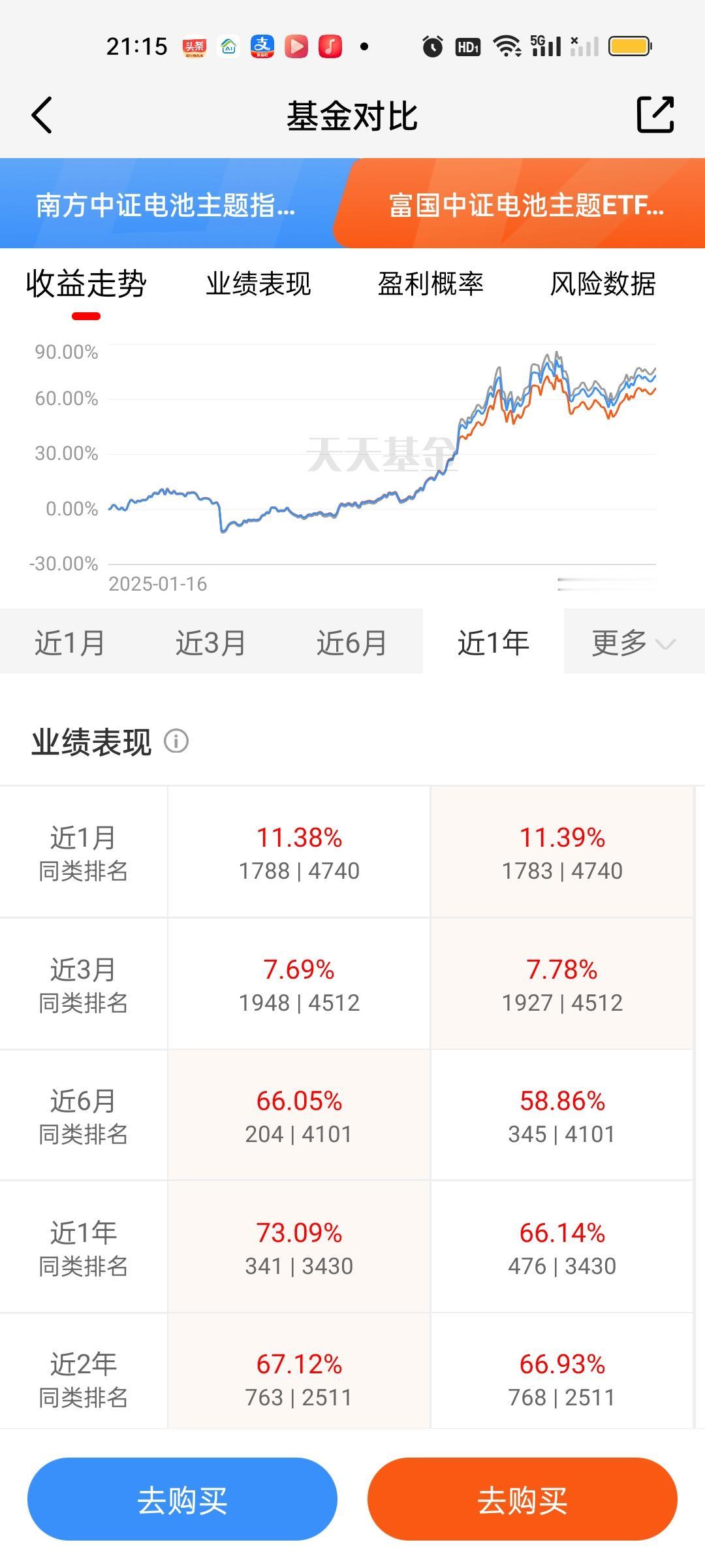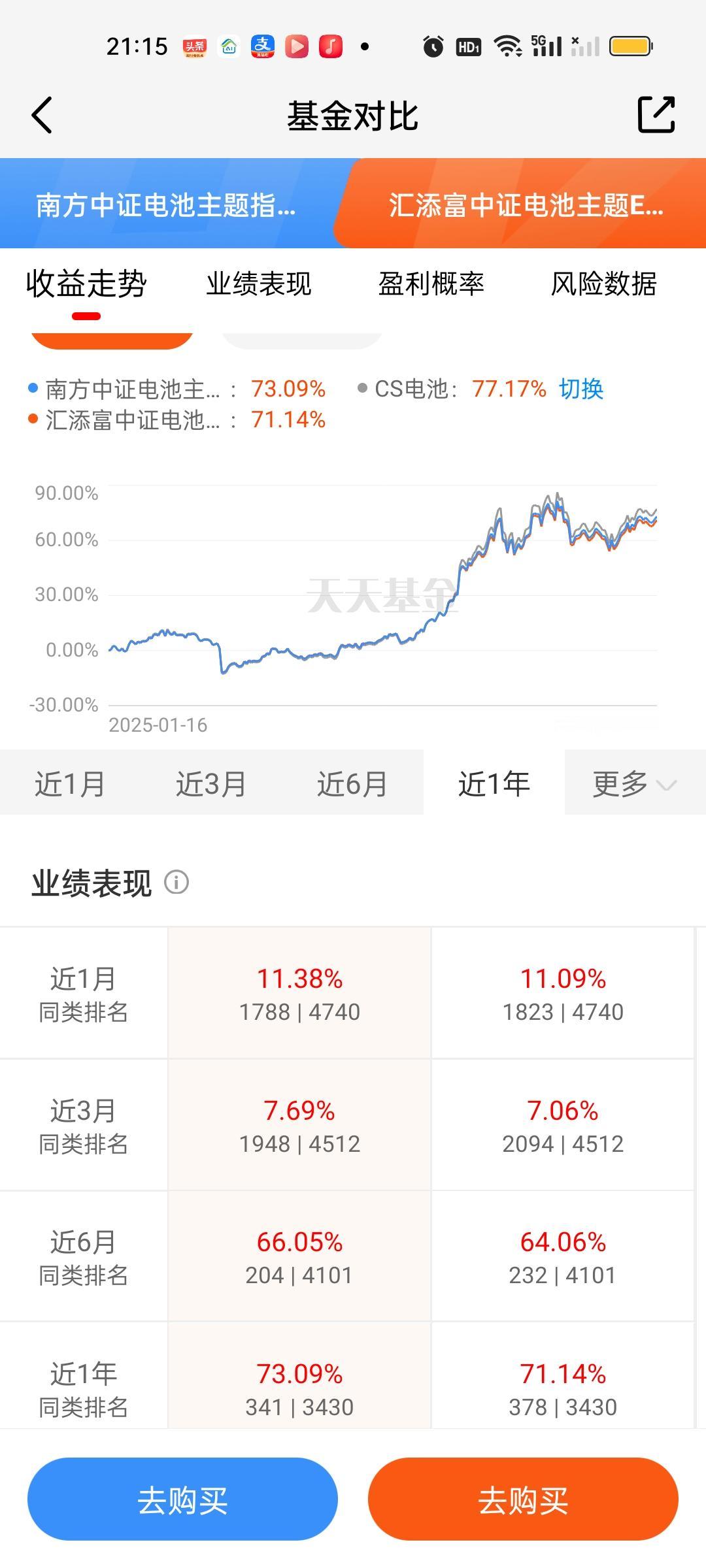 固态电池必须引起重视了,不仅仅国家部委发话了,更在于目前市场上唯一的主线商业航天处在深度调整期,这个调整可能是一周,也可以是一个月,现在市场是严重缺乏主线的。这个时候资金从商业航天巨幅流出六七千亿,需要有板块来承接。当然这7000亿迟早也会回流到商业航天,这个毋庸置疑! 固态电池板块目前指数型和ETF联接型基金合计有8只,也就是我们说的七免型基金,买入免费,持有7天赎回免费。后面再说另外19只股票型基金。 南方的优势延续到了现在,也有五六个月了,这期间一直表现足够稳定。近一个月和近三个月只有富国中证电池和大成中证电池收益率超过了它。老对手汇添富和它差距其实并不大,只有0点几,换不换其实体感差别并不大。