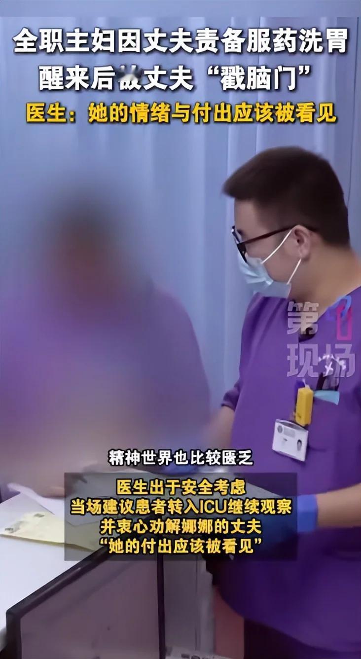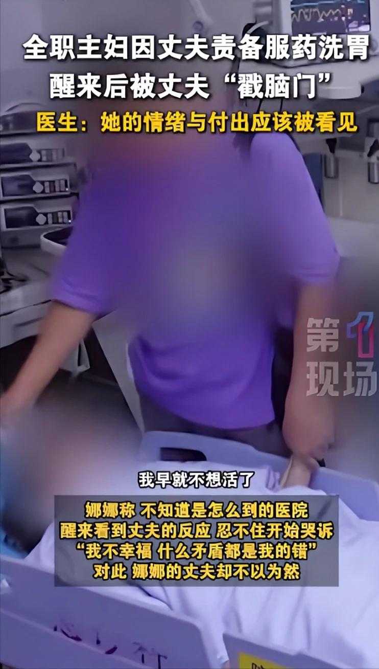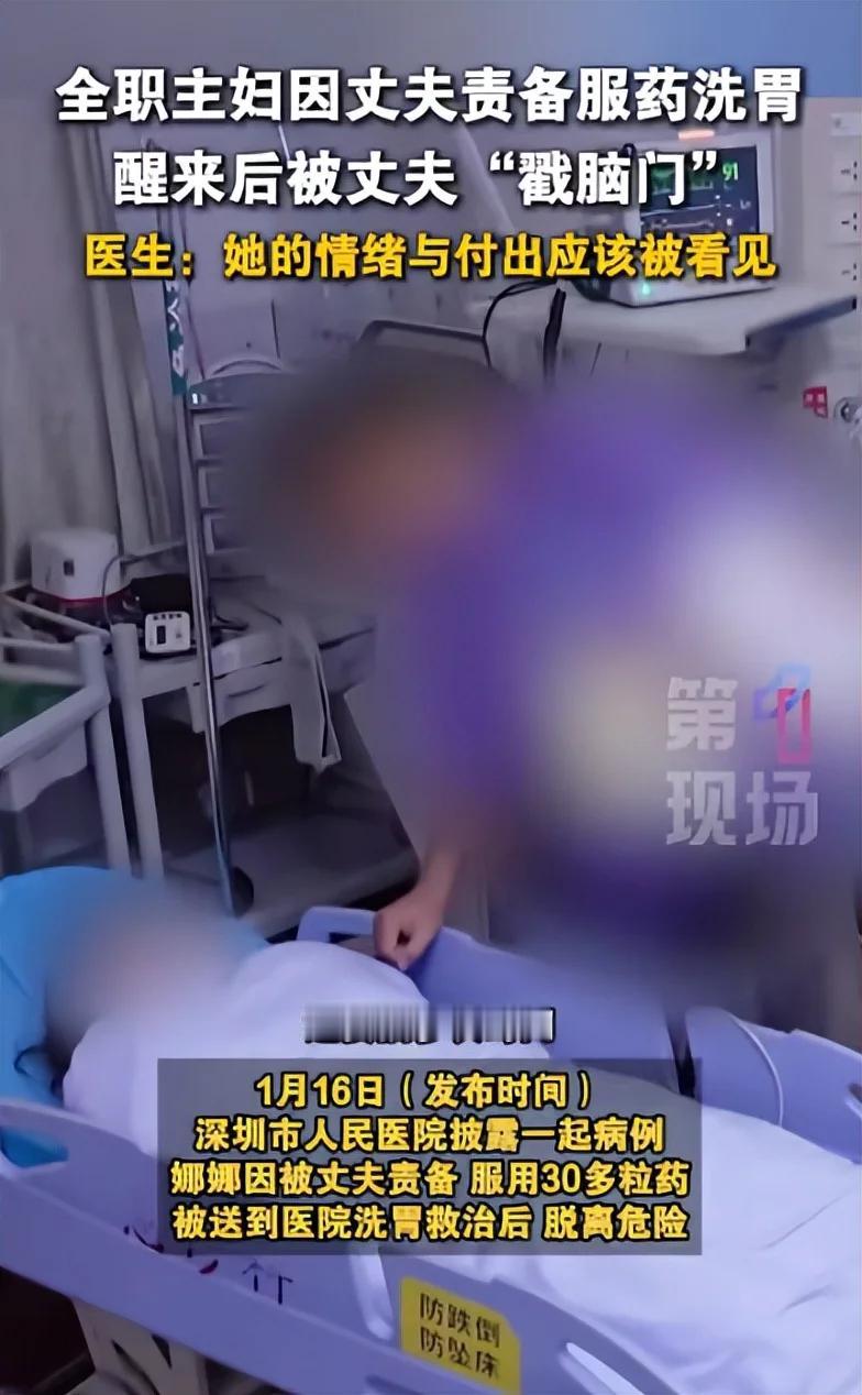 深圳。 女子全职家庭主妇,所有家务,一日三餐,辅导孩子作业都得管,孩子学习不好遭到丈夫埋怨,女子吞药轻生。送医后脱离危险,女子哭诉“没有孩子,我早就不想活了。”丈夫很平静:“别那么激动。我俩关系挺好的,她觉得嫁给我可惜了。” 这男人是魔鬼吗? 女子被孩子、家庭逼得都崩溃了,他还跟没事人似的,看妻子像看个局外人,从根本上说他不爱妻子,妻子就是免费保姆,如果哪一项没做好,绝对是妻子没尽到责任,他怎么不想想他在家里是什么角色?有他没他没有分别。难道只给家用就可以了? 女子完全是丧偶式育儿。生活中的交流,情绪大于内容。同情女子的遭遇,但无能为力。