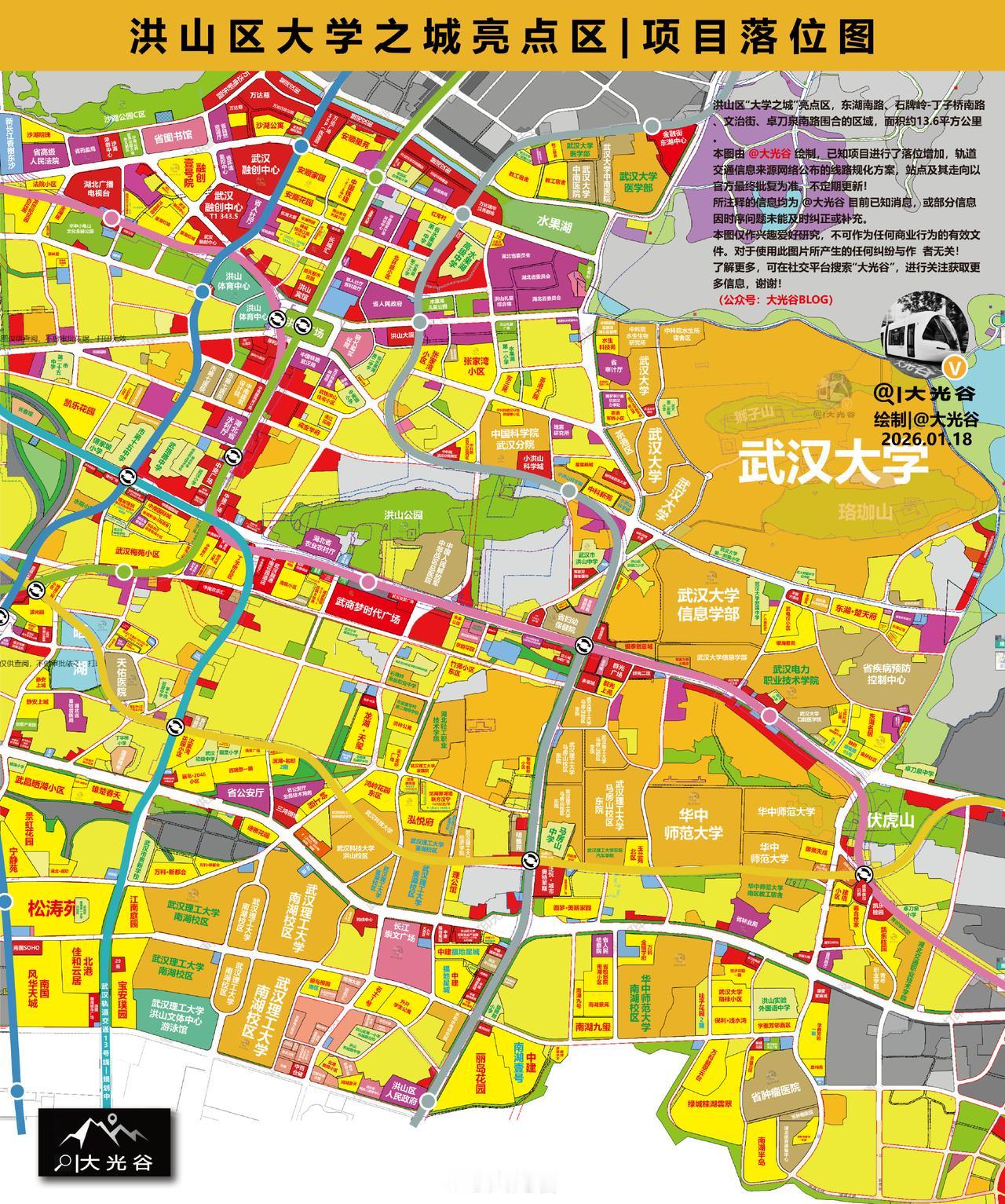 洪山武昌 | 大学之城亮点片区项目落位图更新! 高清原图均可在 G众号 “大光谷BLOG”的菜单中找到获取方式。