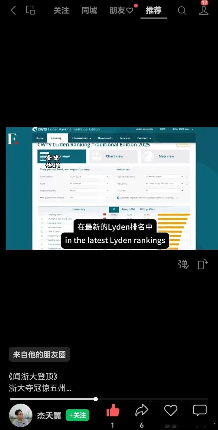 这个大学全球大学排名有点意思。放大了一看,至少前16里面,14个都是东大的。前20名大学的中文翻译1. Zhejiang Univ — 浙江大学2. Shanghai Jiao Tong Univ — 上海交通大学3. Harvard Univ — 哈佛大学4. Stanford Univ — 斯坦福大学5. Cen't S Univ — 中山大学(推测原拼写为 Sun Yat-sen Univ,与第7名重复,或为显示错误)6. Huazhong Univ — 华中科技大学7. Sun Yat Sen Univ — 中山大学8. Xian Jiaotong Univ — 西安交通大学9. Tsinghua Univ — 清华大学10. Univ Toronto — 多伦多大学11. Fudan Univ — 复旦大学12. Univ Chin Acad Sci — 中国科学院大学13. Peking Univ — 北京大学14. Harbin Inst Technol — 哈尔滨工业大学15. Shandong Univ — 山东大学16. Wuhan Univ — 武汉大学17. Univ Cambridge — 剑桥大学18. Univ Oxford — 牛津大学19. Natl Univ Singapore — 新加坡国立大学20. Nanjing Univ — 南京大学这是图二的某种排名吧。