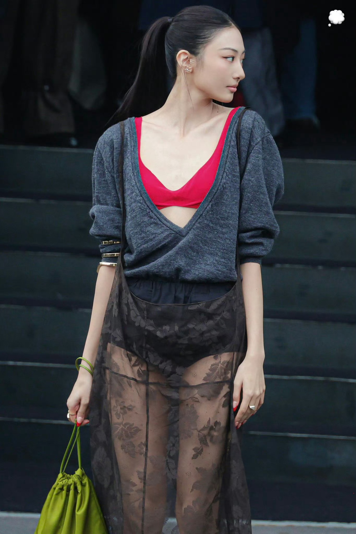 这是我第一次看到打底裤比裙子还长。难怪出道这么多年没有负面新闻。