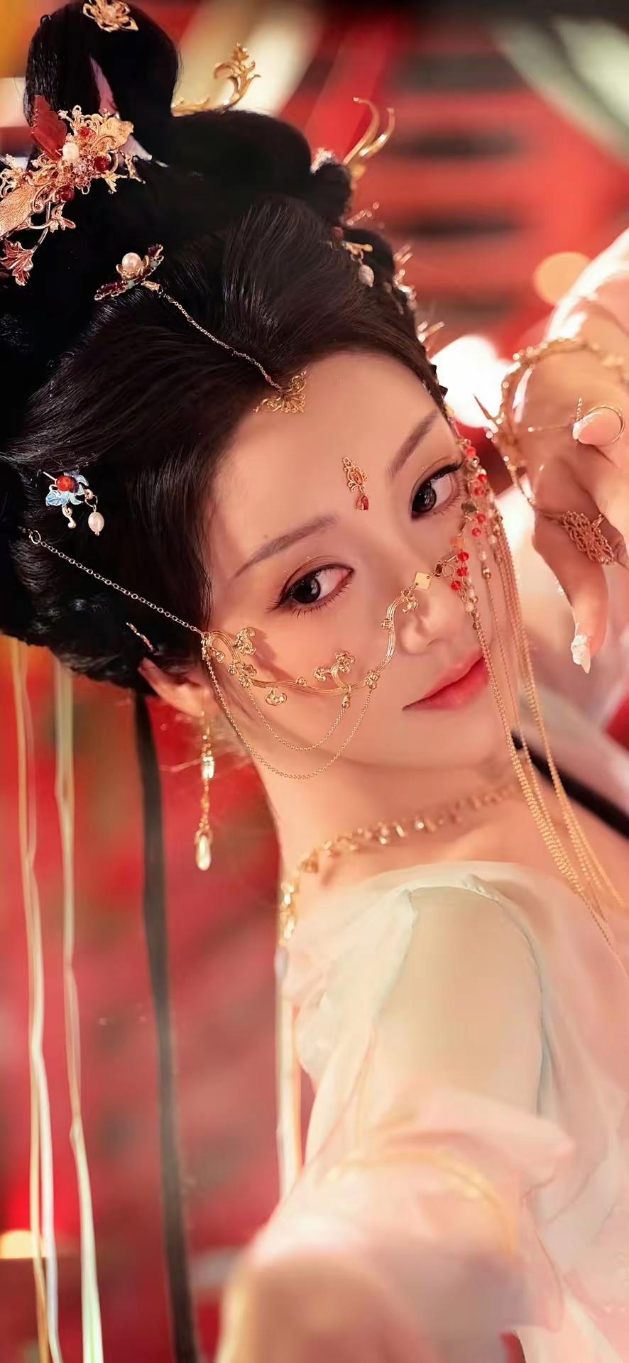 古风美女,惊艳的妆容和华丽的头饰,仿佛穿越回古代。
