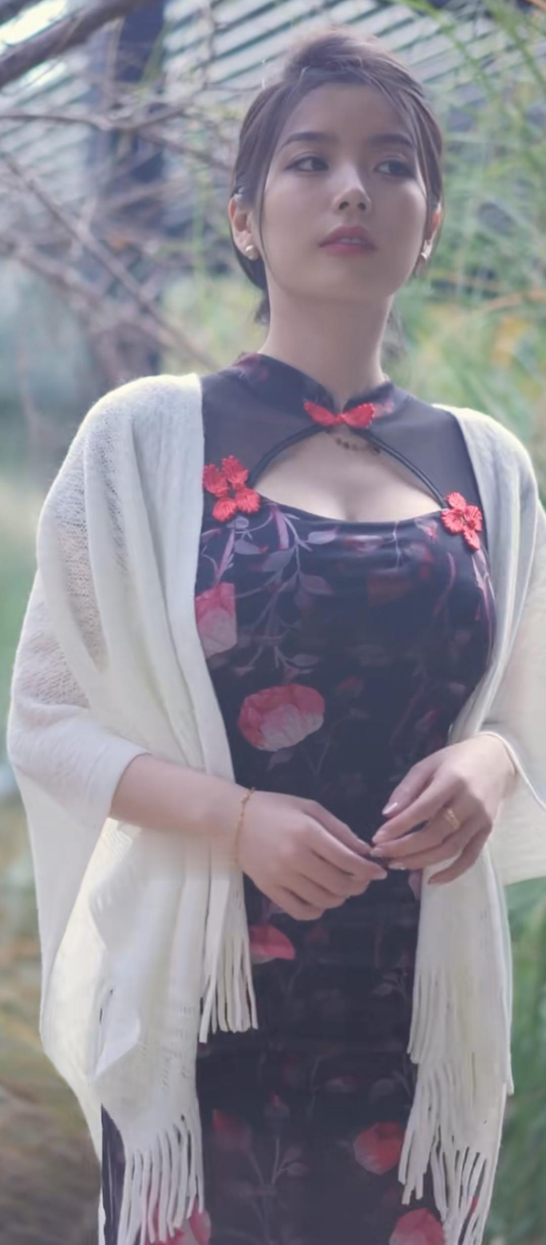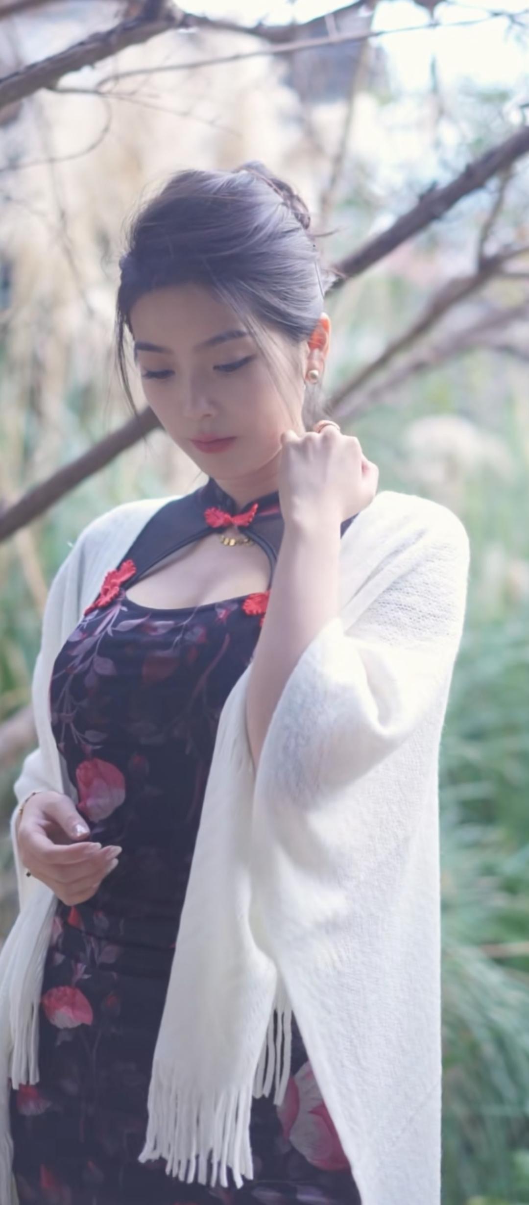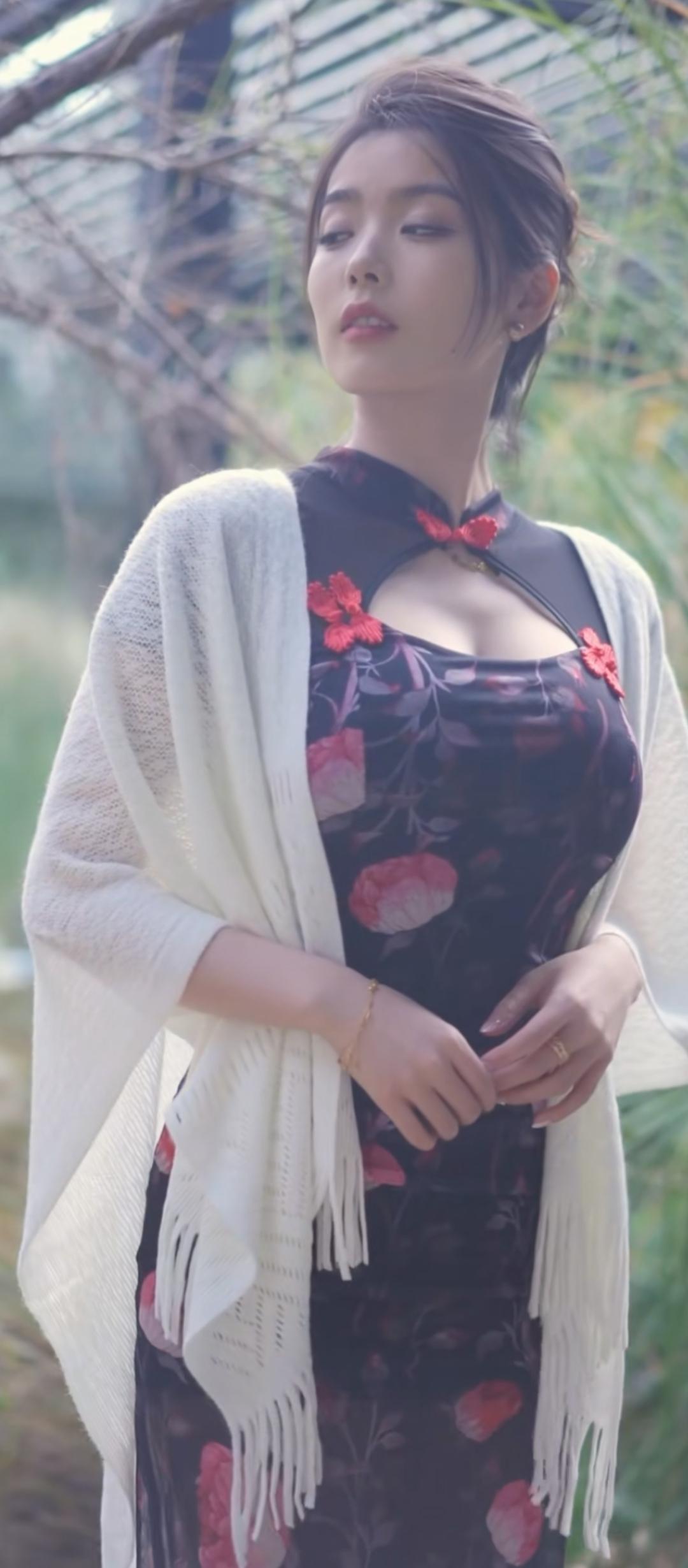 优雅复古风,花裙与白纱的完美搭配,尽显东方韵味。