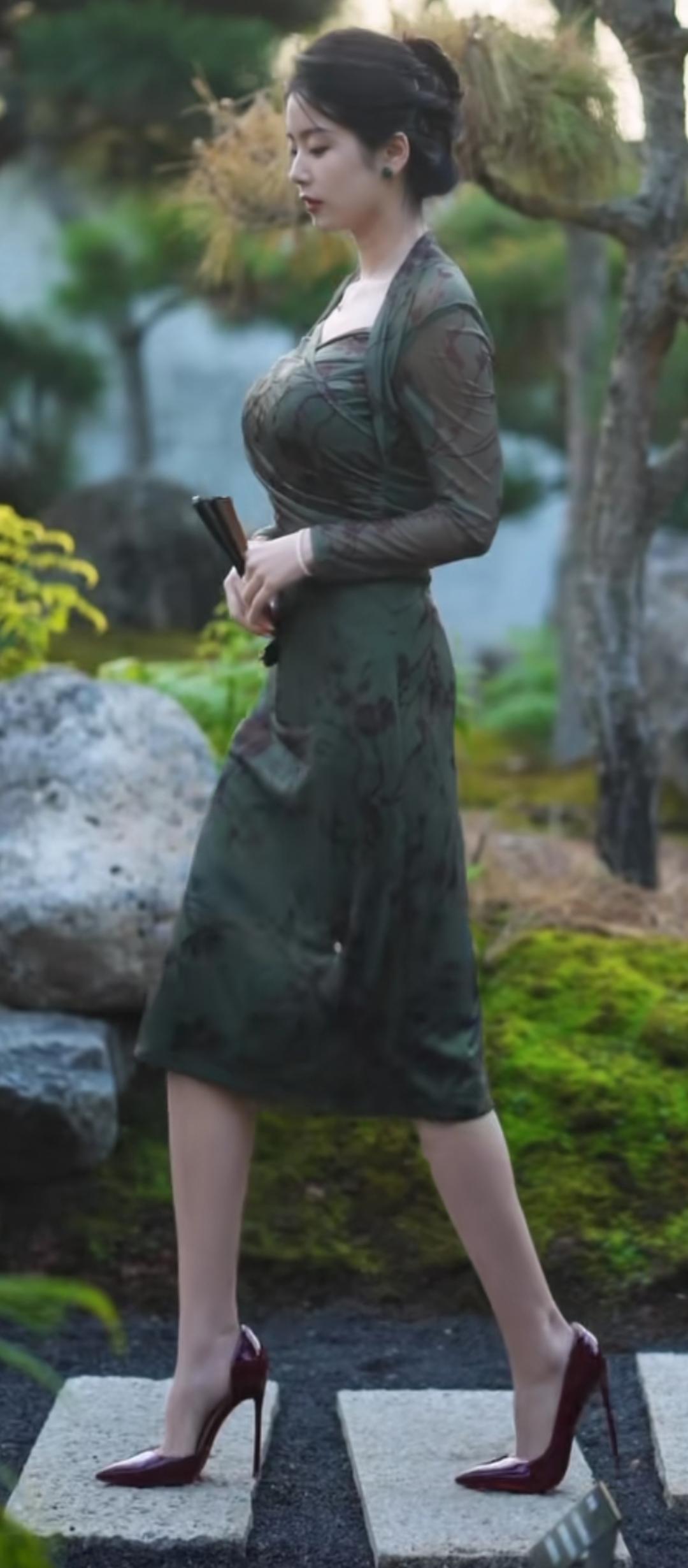 旗袍系列3:温婉女子,古风韵味,石径漫步。