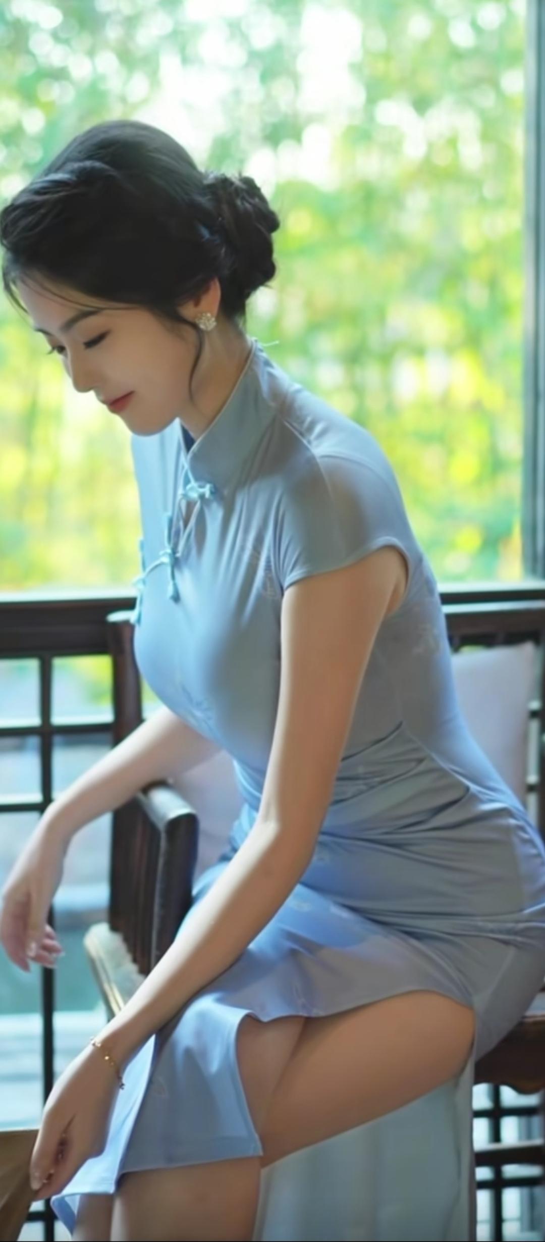 逛商场的旗袍女子。旗袍旗袍美女