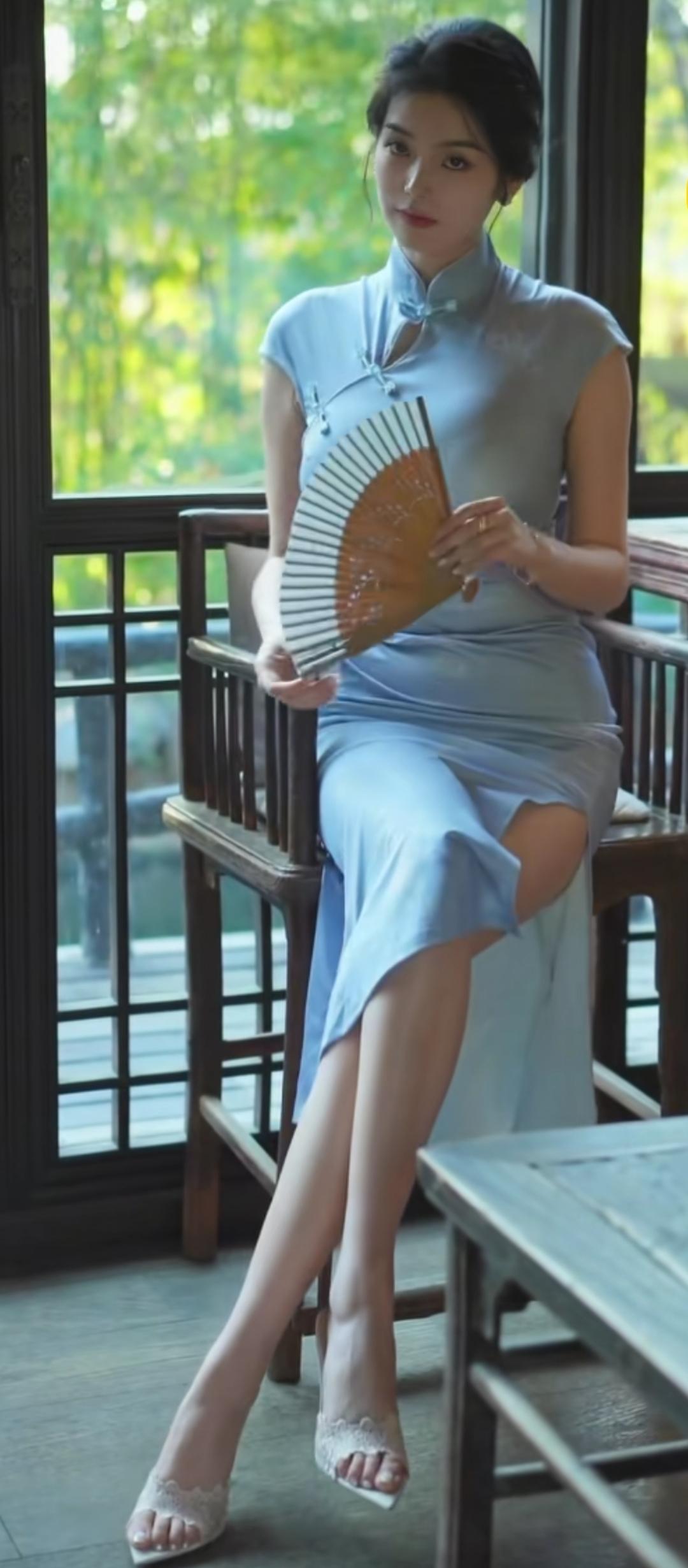 优雅旗袍蓝裙,蕾丝飘逸,梦回古典时光如何把旗袍穿出自己的气质