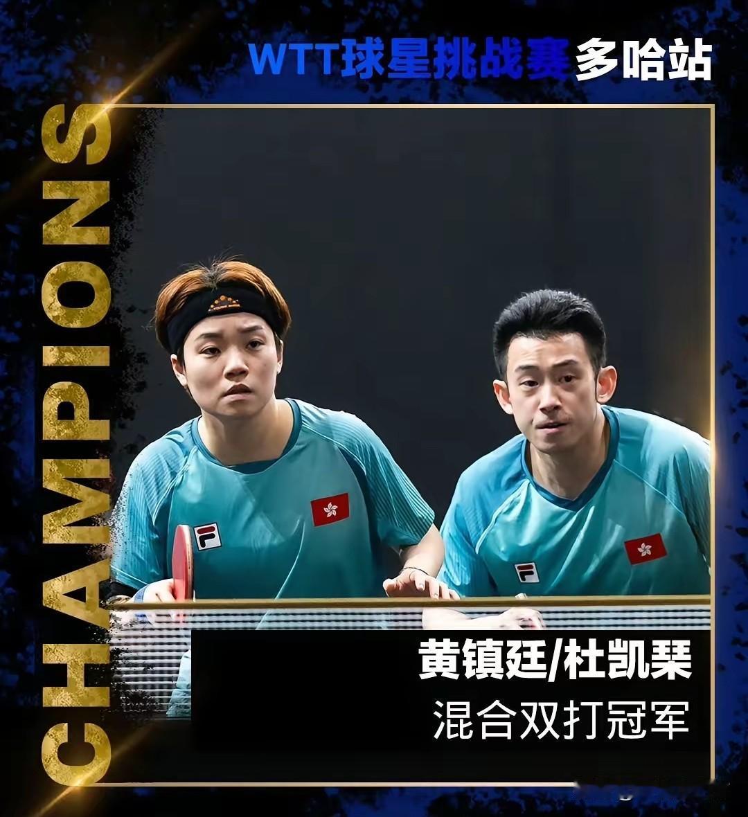 昨晚进行的WTT多哈球星赛混双决赛,中国香港老将黄镇廷/杜凯琹以9-11、11-8、11-9、11-5逆转击败韩国组合朴康贤/金娜英,收获冠军。中国队三对组合参赛选手,只有陈垣宇/蒯曼打进半决赛,但他们在半决赛负于黄镇廷/杜凯琹,未能晋级决赛,无缘争冠。