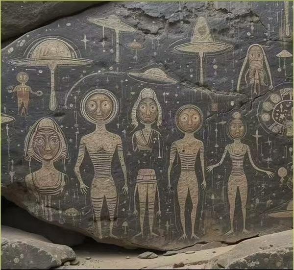 印度恰蒂斯加尔邦的1万年历史岩画一一据称描绘了UFO和“外星人”,与当地关于从天而降的“罗赫拉人”的传说相吻合。外星人 UFO 史前外星人 史前遗址 史前人类
