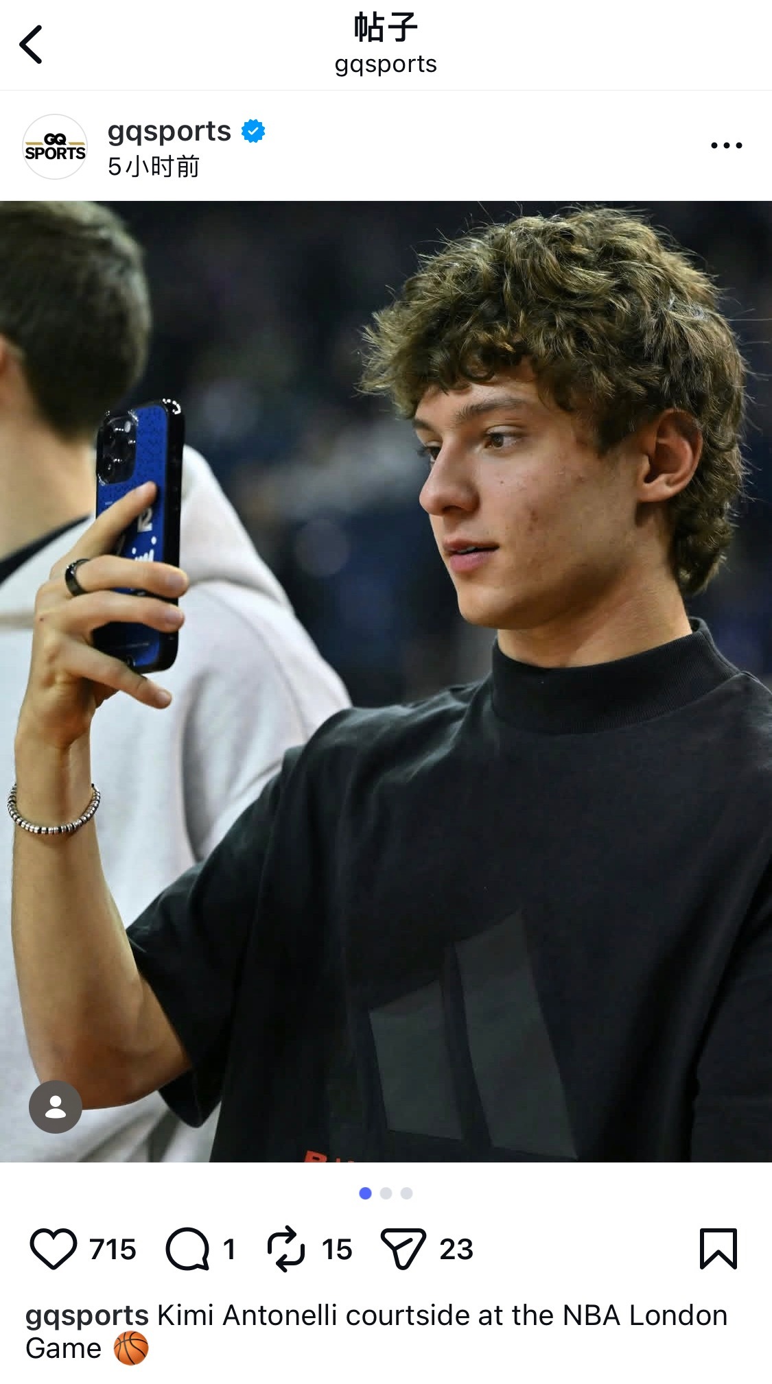 蓬蓬赖斯小kimi都在NBA伦敦赛现场啊