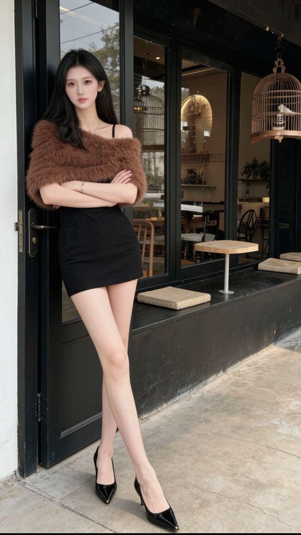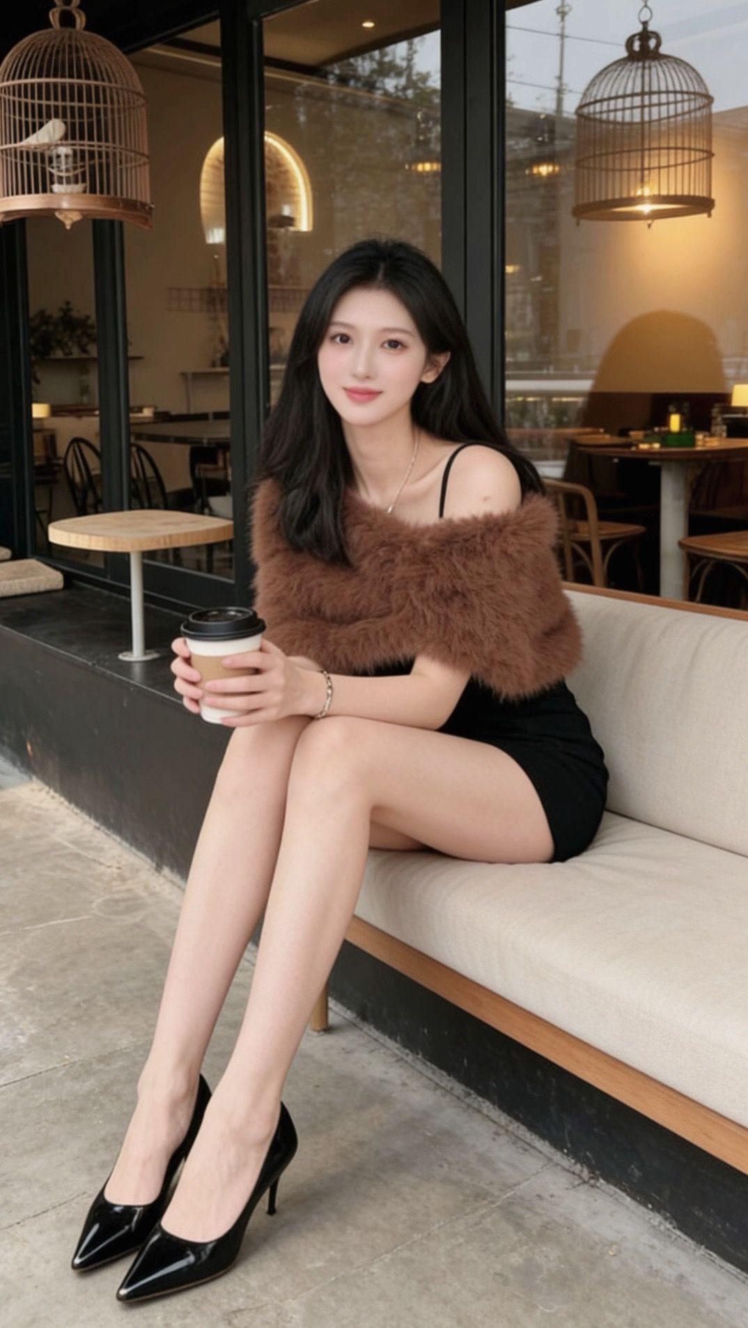 都市雅致咖啡时光,黑裙与高跟鞋的完美搭配,尽显时尚魅力。