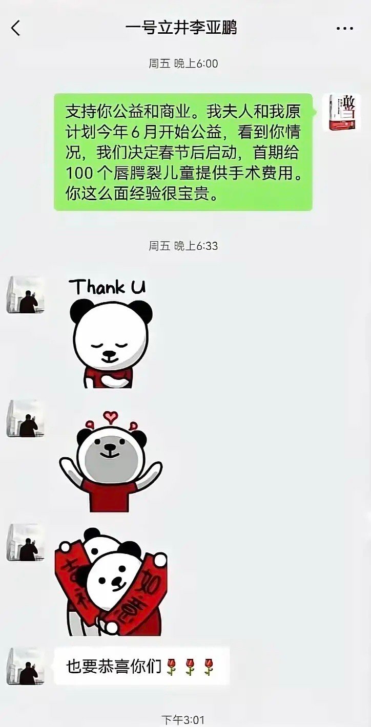 李国庆出手了,给嫣然医院捐款100万,李亚鹏让捐哪就捐哪,百分百信任!