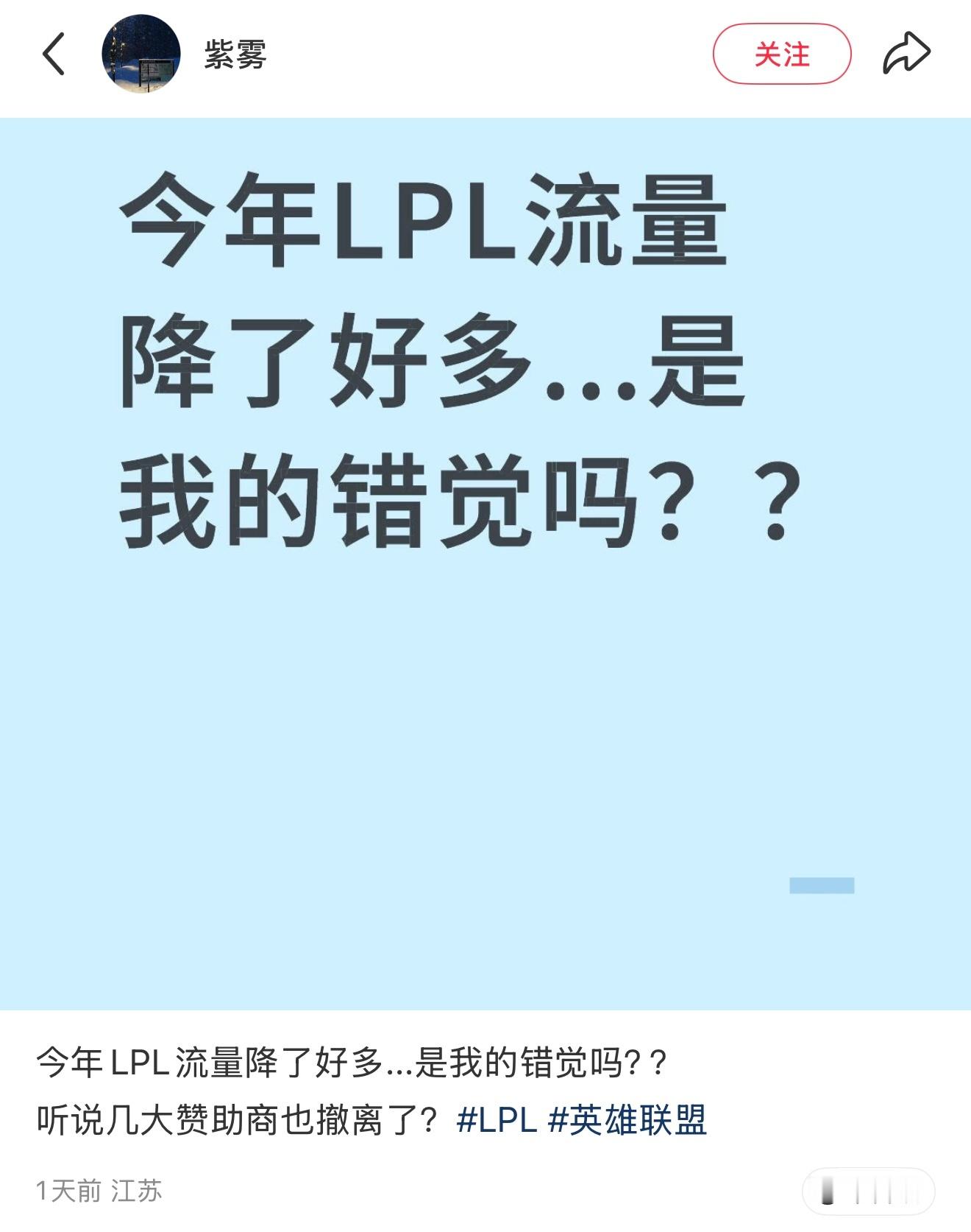 今年LPL流量降了好多,是错觉吗?英雄联盟