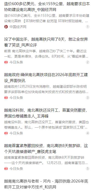越南终于不装了,把话撂这儿,越南部长近期明确要求,越南高铁需在2026年底前动工。 麻烦看官老爷们右上角点击一下“关注”,既方便您进行讨论和分享,又能给您带来不一样的参与感,感谢您的支持!   越南南北高铁这事儿,前前后后折腾了快二十年,如今终于有了明确的 “最后通牒”。2025 年底,越南建设部部长陈宏明公开表态,要求各相关单位加快推进工作,务必确保这条连接河内与胡志明市的高铁在 2026 年底前正式动工,消息一出,立刻在东南亚区域舆论场掀起了不小的波澜。   要知道,这个高铁计划早在 2005 年就已被越南政府提上议程,原本设想 2014 年开工、2035 年通车,却因资金、争议等问题多次搁置。从最初的法案被国会否决,到后来重启规划又遭咨询顾问联合体否定,二十年间反复拉扯,如今突然定下硬性开工时间,难免让外界猜测越南这次是 “破釜沉舟” 了。   但理想很丰满,现实却满是坑。这条全长约 1540 公里的高铁,总投资高达 670 亿美元,而 2024 年越南全年财政收入才 775 亿美元,这意味着项目造价几乎逼近国家一年的财政收入。越南政府自己拿不出这么多钱,只能计划少量自筹,其余全靠外资输血。   可越南开出的合作条件实在让人难以接受,不仅要求外方承担大部分资金,还隐含着技术无偿转让、长期政策补贴等苛刻要求,完全偏离了正常商业逻辑。此前中国企业曾参与前期对接,美国 M&G 投资联盟也高调宣称要注资,结果都因条件不合理先后退出,连越南最大民营集团 Vingroup 在与德国西门子签署合作协议 8 天后,也果断撤回了投资申请。   资金难题还没解决,盈利困境更是肉眼可见。越南人均 GDP 刚过 4000 美元,民众收入水平有限,但河内到胡志明市的航空出行却异常 “卷”。廉航常态票价只要 200-300 元人民币,甚至有 “0 越盾机票”,2 小时就能直达,班次密到 10 分钟一班。   反观高铁,按照同里程定价参考,二等座起步价至少 700 元,运行时间要 5 小时以上,价格和时间都没优势。要是定低价吸引乘客,以越南的客流规模,年收入可能连运营成本都覆盖不了;要是抬高票价,民众只会果断选飞机,高铁只能沦为 “空驶线路”。   更要命的是,越南没有高铁全产业链技术,从列车到核心部件几乎都要进口,这让建设和后续维护成本居高不下。有企业测算,这条高铁未来 30 年年均运营成本就达 42 亿美元,还不算本金利息、折旧和大修费用,哪怕政府提供 35 年无息贷款,也很难避免长期亏损。   越南政府这么急于推进高铁,核心原因是看着周边国家的基建进度坐不住了。中老铁路早已通车见效,中泰铁路稳步推进,泰国等邻国的物流基建不断升级,让越南担心在区域竞争中掉队。加上越共提出 2045 年成为高收入发达国家的愿景,高铁作为 “面子工程” 被赋予了象征意义。   但象征意义不能当饭吃,这个项目从商业逻辑上就站不住脚。它不像货运铁路能直接带动贸易发展,全程仅开行客运,却面临航空的激烈竞争,既解决不了越南物流竞争力不足的核心需求,又超出了民众的消费能力,大概率会成为长期依赖财政补贴的 “吞金兽”。   反观中越合作的老街 - 河内 - 海防铁路,就显得务实多了。这条全长超 390 公里的铁路,连接越南北部与中国西南地区,目前已进入关键建设阶段,明确要与中方技术同步,建成后能直接带动跨境货运和区域经济,经济效益已经初步显现。   两者一对比,差距一目了然。老街 - 河内 - 海防铁路投资规模适中、贴合实际需求,而南北高铁却追求 “高大上”,忽视了自身经济实力和市场需求。越南想靠一条高铁实现基建跃迁、提升区域竞争力,出发点可以理解,但脱离实际的规划终究难以长久。   现在距离 2026 年底只剩一年左右时间,越南还没敲定靠谱的投资方,资金缺口巨大,盈利模式模糊,沿线征地价格还在暴涨。即便按时开工,后续的建设、运营难题也会源源不断。这条折腾了二十年的高铁,到底是能成为越南的 “发展引擎”,还是会沦为拖累财政的 “烫手山芋”,恐怕只有时间能给出答案。