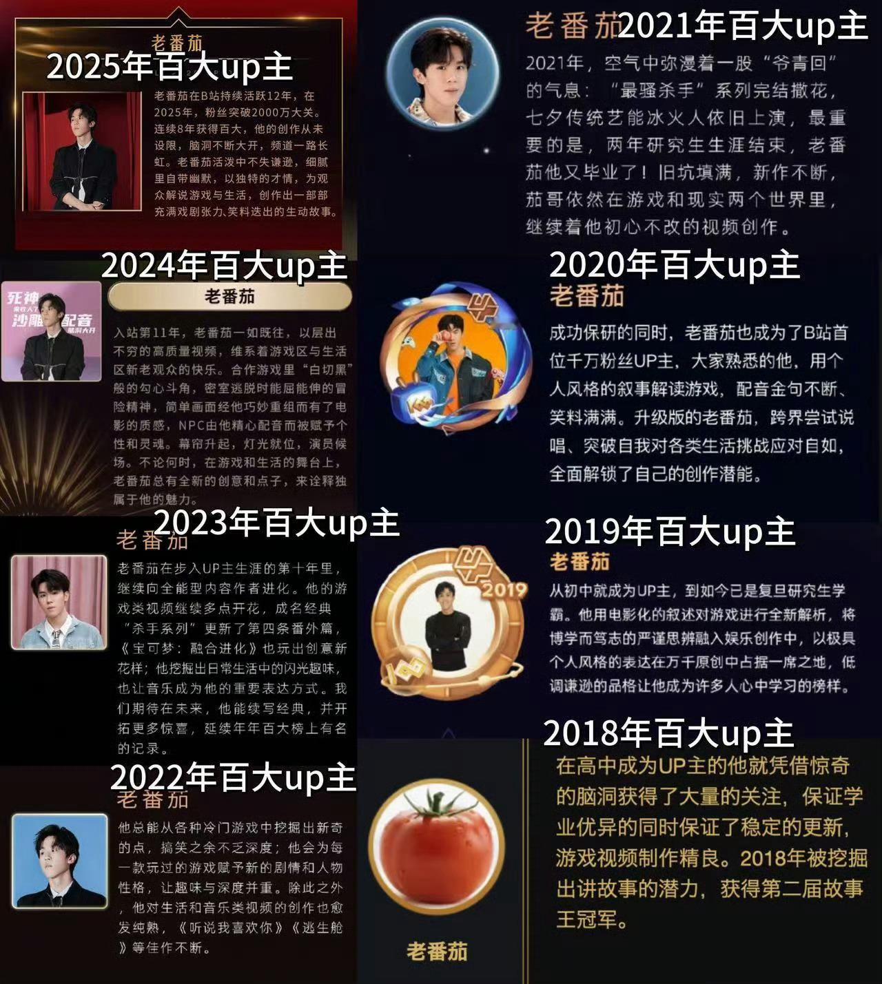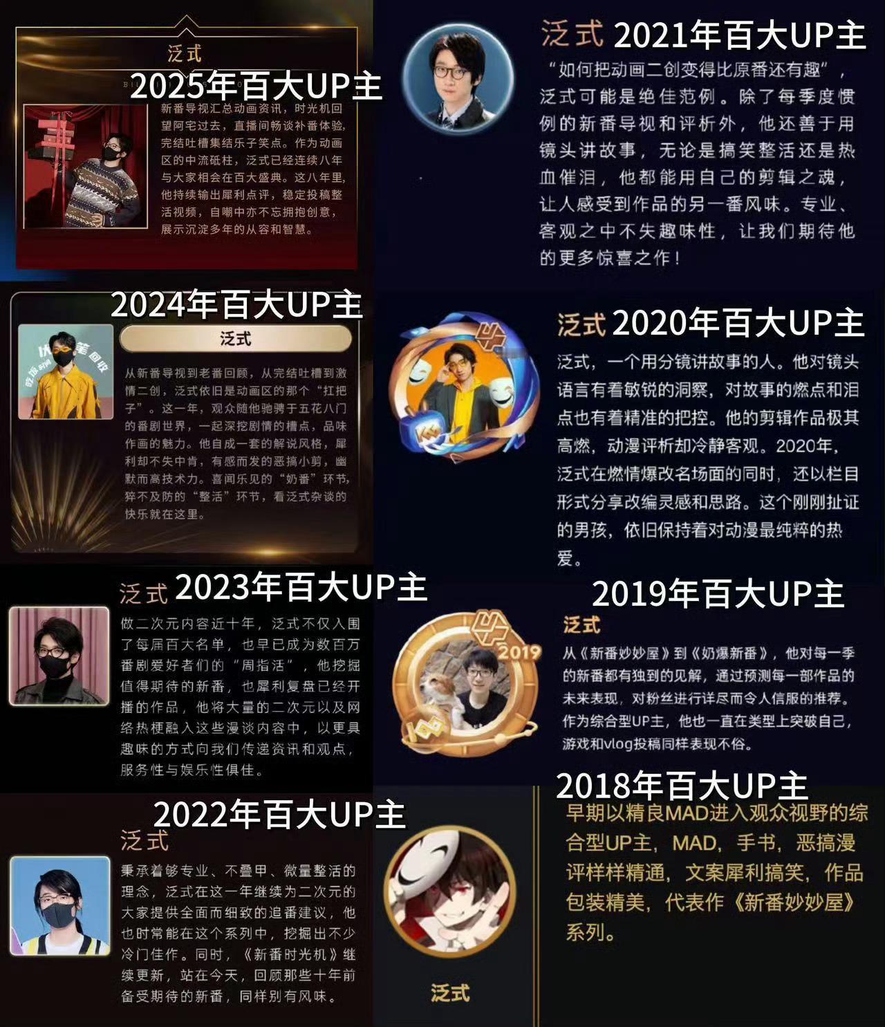 连续8年获百大的UP主年度四皇仍在顶端,木鱼、老番茄、散人、泛式已是B站化身。游戏解说、动画MAD、影视二创、快乐玩游各自代表一个时代。虽涌现新人,真正引领风向者屈指可数。时代在变,经典的印记永存。