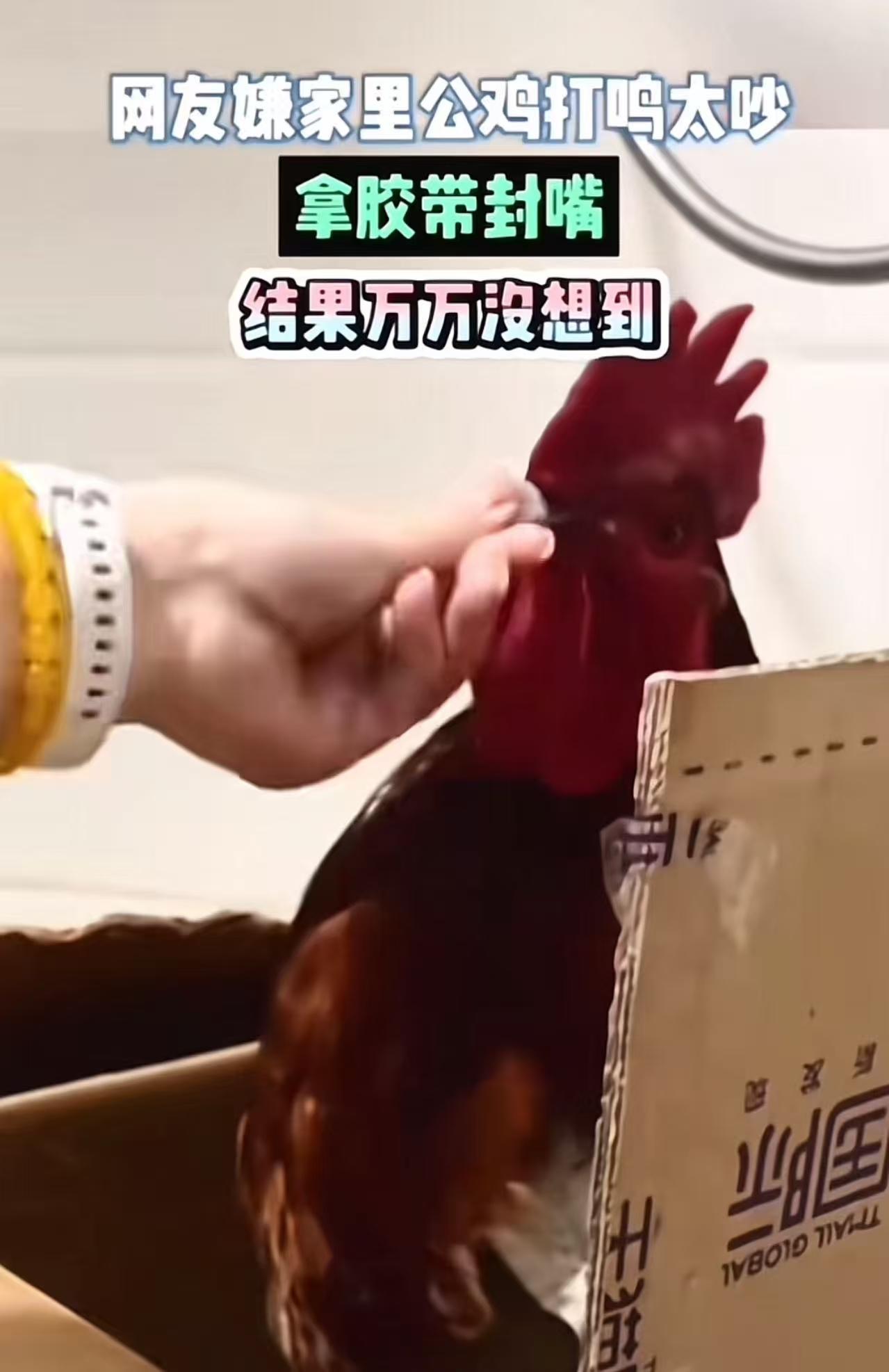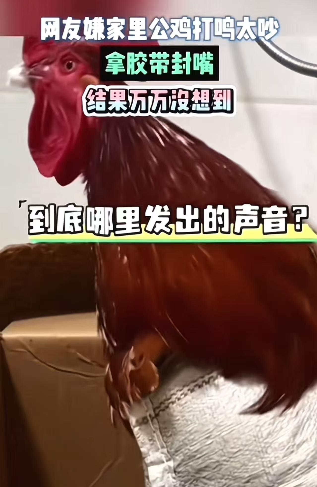 女子嫌家里公鸡打鸣太吵,拿胶带封嘴,结果万万没想到…… 过年临近,亲戚送来一只健壮的大红公鸡,女子想着养几天,过年当天宰了炖汤。 可是这只公鸡是个“生物闹钟”——每天天刚亮它就准时开嗓,声音洪亮、穿透力极强! 女子天天被吵醒,忍无可忍。翻出一卷透明胶带,一把逮住公鸡,三下五除二,把鸡嘴绕了三四圈,缠得结结实实,连喙都合不拢。 “这下看你还能叫个啥!”她得意地想,转身准备回去补个回笼觉。结果刚转身,熟悉的“喔——喔——喔——”又传来! 她回头一看,那只公鸡正昂首挺胸,脖子伸得笔直,嘴巴紧闭,却依然发出嘹亮打鸣! 女子当场傻眼:“嘴都被封死了,它到底是怎么叫出来的?!” 无奈之下,她只好上网求助:“有没有人知道,公鸡打鸣到底从哪儿发声? 此事引发热议,有网友说,以前我家治公鸡打鸣的办法是把鸡扣在一个筐下,鸡打鸣一定是要伸长脖子的,但那个筐的高度不够,鸡是伸不直脖子的,所以就打不了鸣了,很有效。 也有网友说,眼镜蒙住,它以为是晚上,就不会叫了,鸡的认知是天亮了打鸣! 还有网友说,公鸡:你个老六,一点文化水准都没有,有多少歌唱家,都是跟着俺练的,胸腔共鸣,你还把俺的嘴缠上,缠个毛! 那么,公鸡打鸣到底从哪里发出声音的? 其实,科学早有解释:公鸡的发声器官叫“鸣管”,位于气管和支气管交界处。 打鸣时,空气从肺部压出,震动鸣管,再通过颈部和胸腔放大声音——嘴张不张,影响不大。就像人唱歌,即使捂住嘴,哼鸣声照样能传出来。所以,胶带封嘴?纯属无效操作。 这事看似搞笑,却暴露了一个普遍问题:我们总想用最简单粗暴的方式“解决麻烦”,却不愿花一分钟了解问题的本质。 嫌鸡吵,就封嘴;嫌狗叫,就拴铁链;嫌孩子闹,就塞手机…… 现代人越来越擅长“压制症状”,却越来越丧失“理解根源”的耐心。 公鸡打鸣不是捣乱,是它的生物本能,是宣告领地、唤醒族群的天性。你把它当噪音,它却在履行作为一只公鸡的全部使命。 而我们呢?一边享受着农村送来的土鸡、鸡蛋、年味,一边嫌弃它的叫声“扰民”,甚至想用胶带剥夺它最基本的表达权。 如果连一只公鸡的啼鸣都要被“静音”,那田园生活剩下的,不过是被驯化过的假象, 和一颗再也听不懂自然节奏的心。
