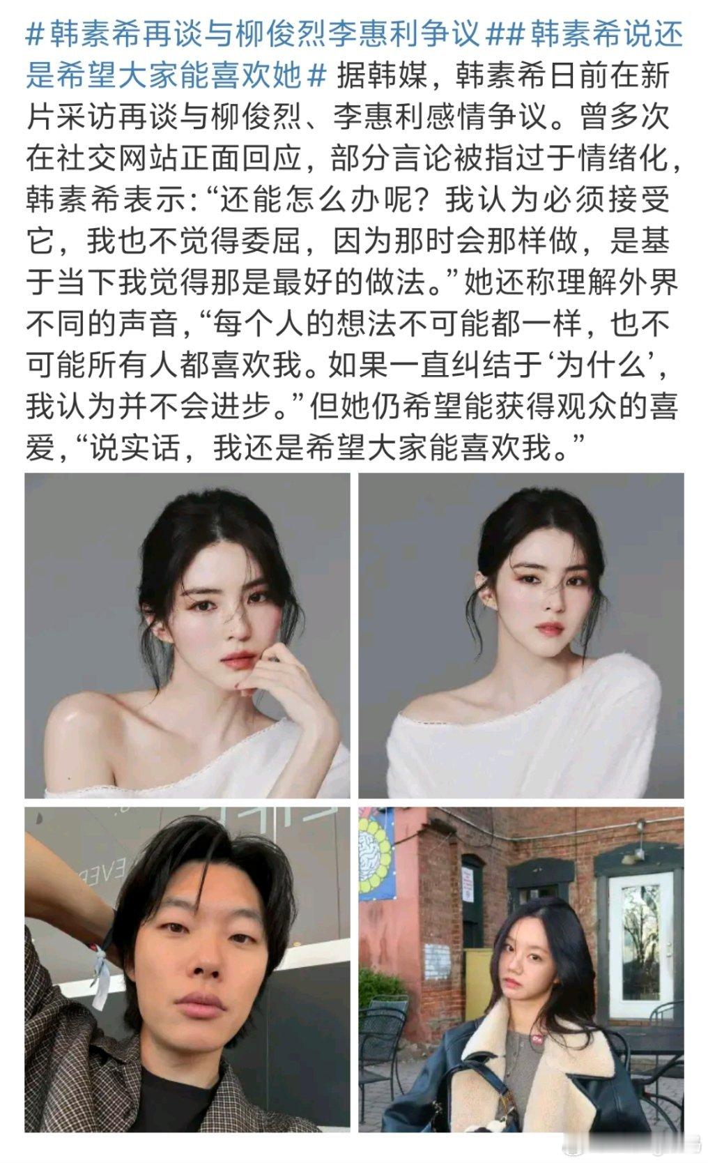 韩素希再谈与柳俊烈李惠利争议为什么是男方快速进入下一段恋情却需要女方来回应应该要