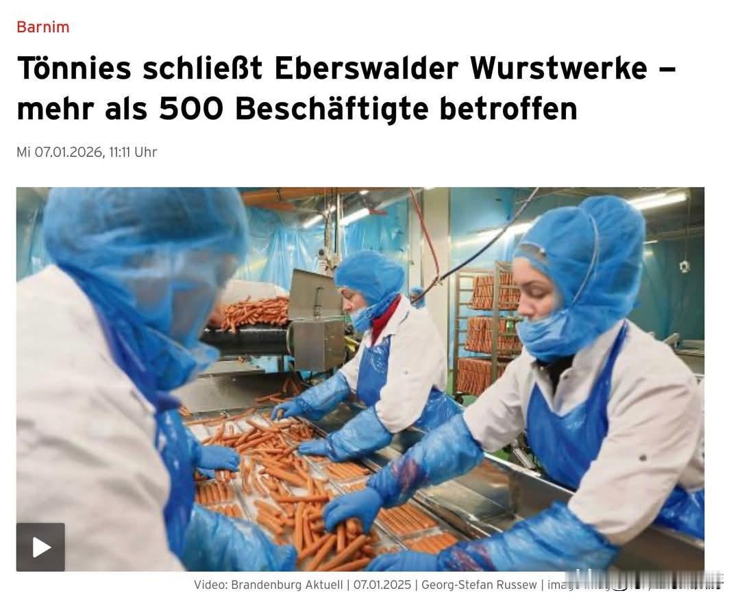 德国经济持续低迷,就连香肠工厂也难以为继。曾是东德最大香肠制造商、拥有3000名员工的埃伯斯瓦尔德香肠厂(Eberswalder Wurst),如今员工仅剩约500人,上周更是被告知工厂将于2月底关闭。 员工表示,他们在新闻播出前半小时才得知这一消息,对于两年前西德母公司收购时承诺的投资,如今却选择关闭工厂的做法,感到既愤怒又无奈。 这并非个例。德国经济已停滞3年,企业倒闭与裁员愈发常见。大型电商扎兰多(Zalando)宣布关闭其位于东部城市的物流中心,将影响2700名员工。 官方数据显示,2025年12月的企业破产数量较前一年同期增加15%,全年破产企业超过1.76万家,创下20年来的新高,运输、餐饮旅游及建筑行业首当其冲。 更让德国人沮丧的是,一系列知名品牌接连倒下,从鞋业、服装零售、折扣商店,到建筑公司及全球最大宠物店,均未能幸免。尽管历史上也曾出现过更严重的倒闭潮(例如互联网泡沫时期),但当时的冲击主要集中在特定行业;而此次却是全面性的影响。 过去被视为经济支柱的制造业,如今反而成为最脆弱的一环。出口导向型产业同时承受着地缘冲突、关税及高能源价格的多重打击,在结构调整完成之前,恐怕还会有更多企业被迫退出市场,就连香肠工厂也只能沦为牺牲品。