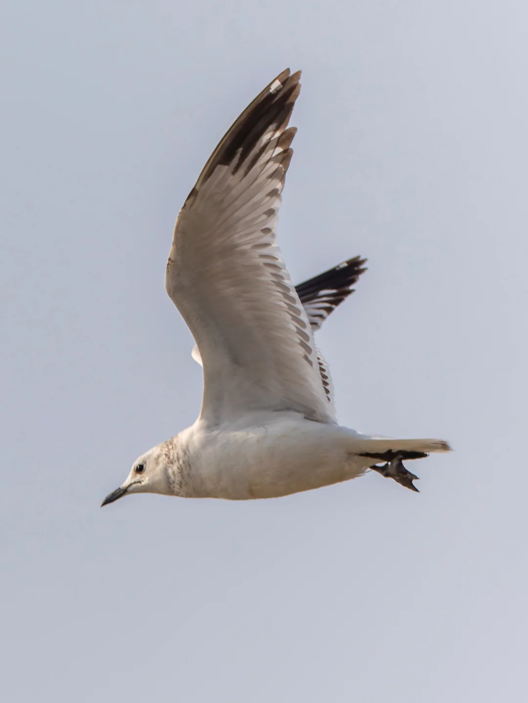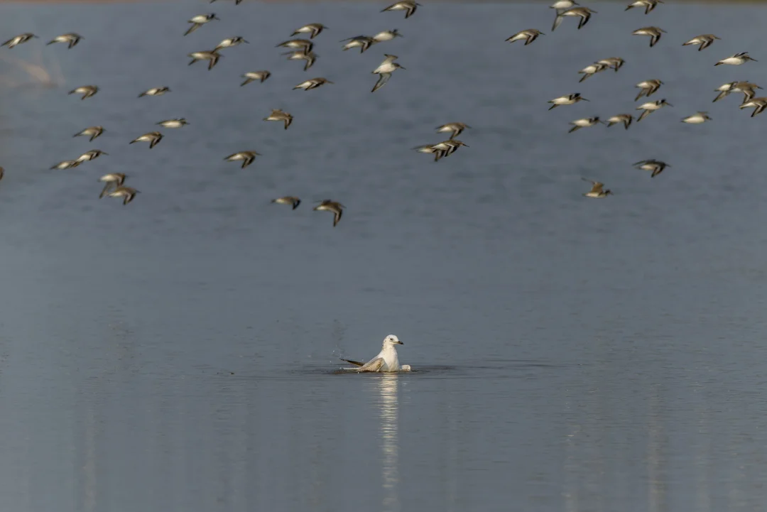 原创拍摄于2026.01 遗鸥,Relict Gull,鸻形目鸥科渔鸥属。国家一级保护动物,分布于中亚,北亚,中国中北部。在非繁殖季,遗鸥头顶及颈背具暗色纵纹,区别于红嘴鸥黑嘴鸥。 遗鸥其实主要越冬于东北亚海岸,在我国主要是渤海湾、黄海和东部,来广东的算是很少见了。广东的天气非常魔幻,1月份还能热得想穿短袖,大多鸟也都“南下避寒”了。这只遗鸥在广东江门新会海边出现,和黑嘴鸥红嘴鸥混群,像极了北方老干部来南方度假,带了保温杯和羽绒服的季节性旅游!