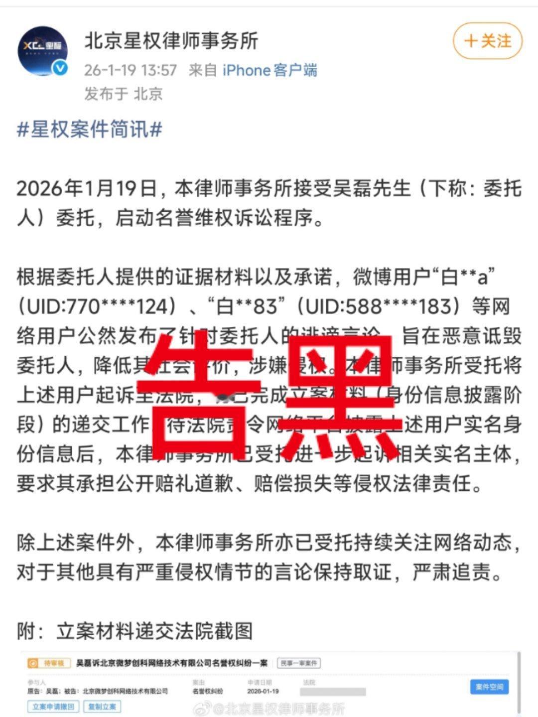 吴磊起诉白珊珊诽谤侵权白珊珊曾点赞吴露可逃相关内娱都学学,吴磊家告黑简直是雷霆之势! 真正被造谣肯定是这个反应!