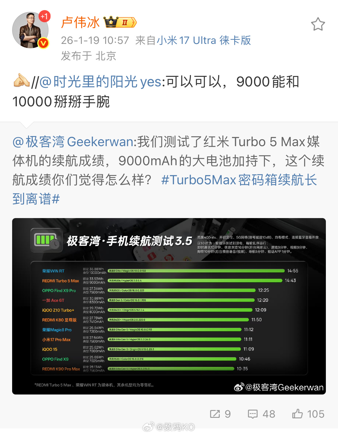 红米Turbo 5 Max 9000mAh的续航成绩,怎么样