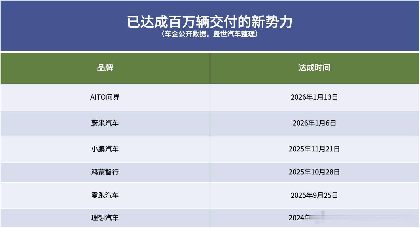 已经达成百万交付的新势力有6家,2026年有哪几个名字能加进这个榜单?