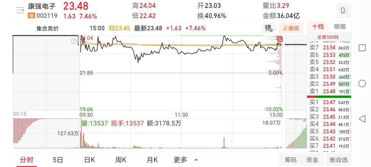 1月19日实盘:三变高位分批止盈出局;海格继续躺板被闷;尾盘半层仓位介入康强博弈隔日修复! 1、三变科技 早盘竞价汉缆、森源集体开出一字板,特变小幅低开,三变竞价阶段出现资金抢筹1个多亿,所以它虽然是封死跌停开盘,但是在板块情绪的带动下,开盘肯定会有明显的上冲动能,而事实确实如此,开盘后整个电网设备出现强势拉升,三变也是直线拉升抢筹,虽然盘中持续有抛压,但是整体做多的情绪非常明显,在拉升过5个多点时出现了一定滞涨,所以在21.09的位置先止盈半仓,之后再次拉升依然是明显的回落,继续在21.11位置减仓,之后在拉升到8个多点位置没有冲板动能的情况下在21.45的位置清仓离场,这只个股当日盈利6.10%,整体盈利只有不到5个点! 三变的竞价是偏弱的,可能是近期受到连板高标断板后极大的负反馈影响,开盘大量散户挂跌停割肉的卖单,而竞价前5分钟,汉缆和森源并没有特别强势,导致到20分时很少有散户撤单,直到20分之后,汉缆和森源持续加单,三变挂单卖出资金越来越少,所以在竞价结束后,很明显电网设备方向出现强修复,那么开盘三变的抢筹就不难理解了,但是毕竟它是跌停开盘,小胖对它的预期反而不高了,所以到高位明显偏弱的情况下选择了分批卖出止盈,虽然尾盘电源设备方向情绪拉满,三变也走出了地天的走势,但是作为短线来说,今天三变确实属于后排了,那么该及时止盈就得止盈,这种卖飞确实没有办法! 2、海格通信 海格继续被资金针对,市场最大的跌停封单依然给到了它,盘中金风和岩山先后开板放人,只有海格依然封死跌停,情绪确实比较差,这种确实没有办法,继续躺板的日子非常难受,这只个股整体亏损幅度已经达到了26.82%! 海格今天盘中有小部分资金尝试跟随金风翘板,但是并没有一点效果,跟随资金寥寥,这也导致了资金最终放弃,但是从情绪上看,隔日竞价直接出现翘板的概率就太大了,而今天商业航天虽然有所修复,但是因为海格的躺板,板块整体的修复力度并不大,或许隔日海格的出狱会带动整个商业航天的修复,毕竟这次短线情绪崩溃的始作俑者就是海格! 3、康强电子 毫无疑问,竞价出来后,整个存储芯片是被资金抛弃的,周末利好这么多的情况下,康强仅高开5个多点是不及预期的,虽然开盘后有资金强势承接封板,奈何板块情绪低迷,并没有资金跟随,很快出现炸板,但是之后的放量回封确实漂亮,吸取上周五三变的教训,海格继续被闷杀的情况下肯定不能去回封,而它确实很快炸开,之后开始跌破分时均线,盘中一度跌破开盘价,好在今天整体市场情绪不错,并没有持续下杀,午后出现资金再次做多封板,可惜依然难以持续,之后迅速回落到均线下,但是最后阶段还是有资金抢先手抢到分时均线上收盘,尾盘竞价看短线情绪有修复预期,所以选择在竞价介入半仓博弈隔日得冲高! 说实话康强盘中跌破早盘低点有支撑的情况下是比较适合低吸的,但是经历了周五的三变,反而变得更加谨慎了,如果短线市场环境好,康强午后的上板封住的概率还是非常大的,可惜市场跌停板依然不少,特别是海格继续闷杀一字跌停的情况下,任何的高位接力都要注意风险,所以尾盘竞价去可能是风险最低的低吸买点,毕竟博弈隔日出现修复是非常不错的,而且隔日海格必定开板放人,那么热门方向的龙头个股断板后的反包就非常值得期待,而且存储芯片整体炒作才刚开始,就算周五一日游,但是之后的行情大概率会有反复,今天康强有过3次上板,是实打实的有做多资金的,隔日开盘至少不会有太大的负反馈! 虽然今天海格继续大面,但是毕竟三变整体占超7层仓位,所以今天整体是有一定回血的,连续两天短线大跌确实很伤人,希望接下来能控制好节奏,海格的阴影逐渐消散! 本文只限于分享和交流,不构成投资建议,股市有风险,投资需谨慎!