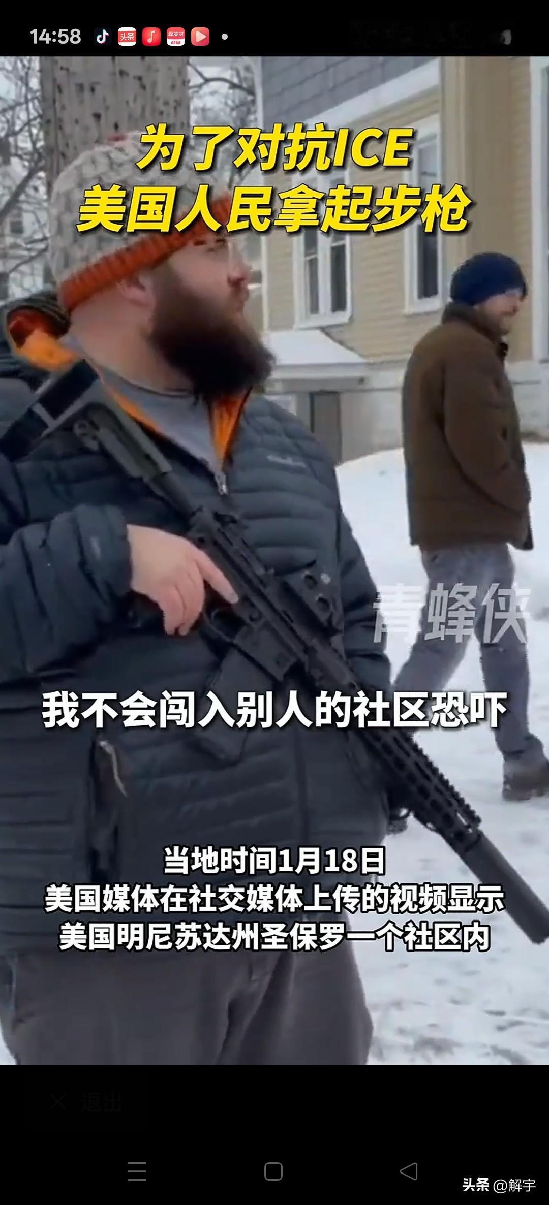 美国爆发内战!五角大楼准备部署1500名士兵平息! 美国ICE本月初在明尼苏达州枪杀一名当地女子的事件,正如此前国际媒体报道预测的一向,迅速引起了该州的舆论海啸,引发大规模抗议活动。且随着美国副总统美国万斯强行推动ICE“逐户上门”搜查,这场明尼苏达州抗议正在迅速升级为骚乱,不仅仅是媒体报道中的“美国男子持步枪守护社区对抗ICE”,还已经演化成为当地居民与ICE的直接冲突,且已经有人在此轮冲突出付出了生命代价,形势更加严峻。为此已有国际媒体为此次事件命名为“美国爆发内战”来进行报道。对此,美国特朗普政府迅速采取了两大行动准备平息骚乱。 一,美国司法部对明尼苏达州州长和明尼阿波利斯市市长展开调查。 二,美国五角大楼准备向明尼苏达州部署1500名士兵以平息骚乱,特朗普提供的理由是《叛乱法》。由此可见,这场缘于美国ICE工作人员的错误执法事件,随着美国特朗普政府的拒绝承认错误并道歉的傲慢措置方式,正在美国民间触发更大的愤怒狂潮,并用他们聚集起来的反抗力量让特朗普感觉到空前的压力,不得不升级到出动军队平息骚乱的地步,这就是群众的力量!