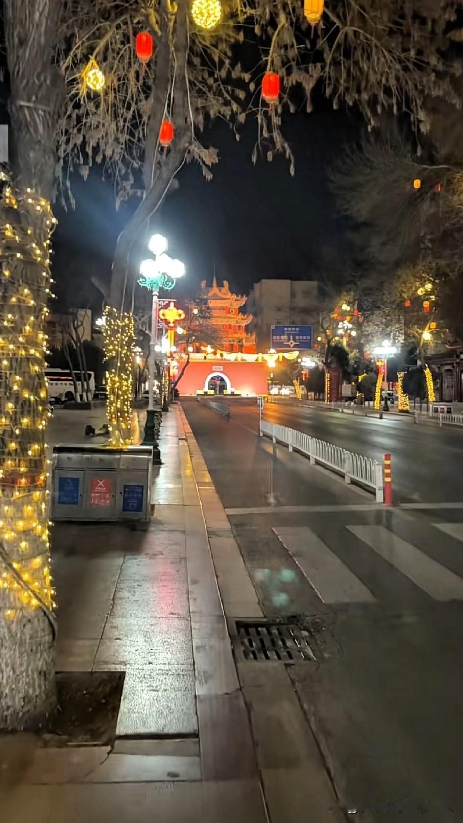早七点出门办事,一抬头直接被这街景美到了! 路灯还没熄,树上的小灯串和红灯笼还亮着,远处的城楼在暖光里像裹了层蜜糖。 街道安安静静的,只有保洁阿姨的扫帚声和包子铺的香气。 这种褪去了白天喧嚣的温柔感,比人挤人的热闹更戳心。原来古城的浪漫,不仅在夜晚的人流里,更藏在清晨无人的街景中。 你见过城市清晨最治愈的样子吗?