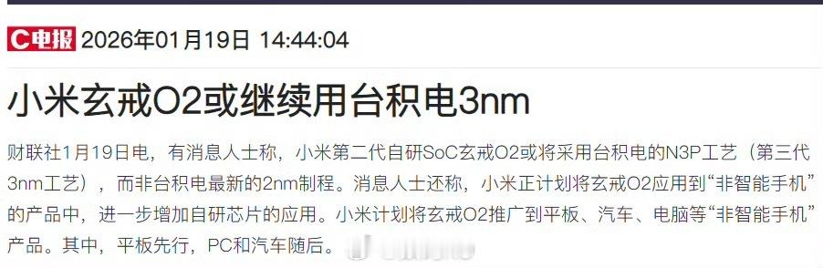小米玄戒O2不仅会用在手机上,还会用在平板、PC、汽车上,不知道这次芯片专家还能找啥借口。