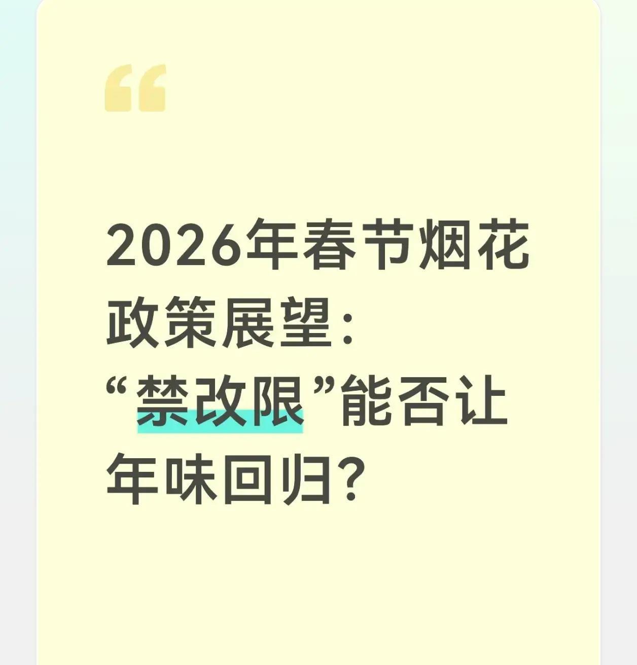2026年春节,烟花爆竹管控明显松动,不少地方从过去的全域禁放转向精准限放,噼里啪啦的鞭炮声有望在很多城市郊区和乡村重新响起,让过年更有那股熟悉的烟火气。 最近全国趋势很清楚,国家层面从来没搞过全面解禁,而是坚持“禁放为主、限放为辅”,地方根据实际情况灵活调整。山西带头废止了旧的全面禁放文件后,省内大同、运城、介休等地快速跟进,城区划出严格禁放区,但限制区域内除夕、正月初一等关键日子全天能放,其他日子也有限时段,个人只能玩C、D级小型环保烟花。河南郑州、洛阳等地延续“城区严、郊区宽”的路子,除夕到初一延长到凌晨,郊区空旷地带基本放开。广东佛山部分区从腊月二十三到正月十五都能放,时间跨度长达十多天。甚至成都周边县市也优化了方案,除夕到元宵节特定几天允许燃放。 这种变化特别务实,既回应了大家想找回儿时年味的呼声,又没丢掉安全环保底线。最新数据显示,环保烟花技术进步很大,二氧化硫和颗粒物排放比传统产品大幅下降,重污染预警一出照样全停,空气质量基本可控。过去几年限放城市的监测也证明,集中短时燃放后AQI很快回落,不会造成持久雾霾。 我认为这才是最靠谱的治理方式:不是简单一禁了之,也不是随便乱放,而是用划区限时、限品种、设集中点、严查违规这些组合拳,把风险降到最低,同时留住传统习俗的温度。超大城市如北京、上海继续全禁合情合理,人口密集、安全压力大,但三四线城市和县乡适度放开,能让更多家庭带着孩子在空旷地方放几挂小鞭,守岁时听听响声,看看火花,团圆的仪式感瞬间就回来了。 2026年春节想放炮的朋友,记得提前查本地官方通告,只买正规C、D级产品,在允许区域和时段玩,孩子必须大人陪着,重污染天坚决不动,安全永远排第一。过年热闹点,日子才更有奔头