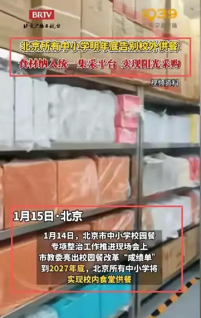 北京中小学食堂要大变样了!就在2026年1月,北京教委直接放话:到2027年底,全市所有中小学必须彻底停掉校外送餐,全部改成学校自己管食堂,让孩子们吃上真正热乎、新鲜的饭菜。 过去几年,很多学校靠外面公司送盒饭,孩子经常抱怨饭凉了、菜少肉、营养跟不上。学校一出事就容易推给供应商,责任不清。现在北京铁了心要改,2025年已经搞定1300多所学校的1600多个改造项目,满意度直线上升到85%以上。核心就是把食堂变成自营,校长直接当第一责任人,出了问题没法再甩锅,饭菜质量和安全直接跟学校领导挂钩。 空间小的老学校咋办?北京不搞一刀切,推“中央厨房+微厨房”模式:大厨房统一采购、洗切好食材送过来,学校就地快速加热烹饪,15分钟内就能端上桌,饭菜热气腾腾,不会再发黄捂臭。有的学校还用智能设备,按克称量米面肉菜,营养更精准,孩子钙摄入达标率高了,腿疼、感冒都少不少。 食材采购全上阳光平台,全品类统一集采,源头可查,断掉中间猫腻。学校还建智慧系统,监控全程透明。食堂不光做饭,还成了活生生的营养课,孩子边吃边学怎么挑菜、分清品种,比死记硬背管用多了。 这步改革直击要害:以前利润归企业,风险学校扛,孩子最吃亏。现在责任全压实,公益属性回归,每一分钱都得花在刀刃上。方向没错,孩子们的饭碗终于有人真心守护了。两年倒计时已开,北京校园餐正往更安全、更营养的方向加速跑。