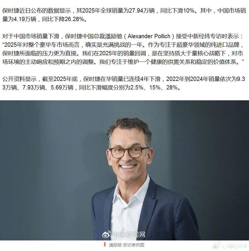 要我看,不是保时捷变弱了、变差了,而是市场环境不一样了,中国车企们的产品更便宜、性能也不错,比较下来,保时捷长年以来的金字招牌已经不那么好使。5秒内的加速能力,现在20万以内的电车就轻松做到,要说大空间,这是保时捷没有的。如今,百万级的卡宴、帕纳梅拉,在国产车当中已经有很多平替了,不用我一一举例,大家都知道。而718、911这样的双门跑车,国内做的还很少,暂时还算是个空白,但今年也有国产车企要做这个赛道了,这都让保时捷的市场份额受到了较大的冲击。现在保时捷面临的情况,可能不比当年被大众拉一把之前更乐观…..保时捷中国总裁谈2025年销量下滑保时捷中国总裁称确实充满挑战