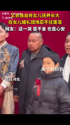这个爸爸火到新华社去啦! 起因是一名单亲爸爸来参加女儿的婚礼,当和女儿女婿一起合影 时,他再也憋不住哭出声来,瞬间泪目!硬生生把自己哭成了表情包,攥紧的双手里全是说不出的心酸和不舍! 在安徽阜阳这场热闹的中式乡村婚礼上,红色的背景板、喜庆的锣鼓声里,摄影师笑着喊:“看镜头,笑一个!” 新郎新娘都露出了幸福的笑容,可站在中间的父亲,却突然红了眼眶。他努力想挤出一个笑容,嘴角却不受控制地往下撇,五官皱成一团,眼泪瞬间砸了下来。他没有用手去擦,只是攥紧了双手,强忍着不哭出声,肩膀微微发抖。 这位父亲叫张军(化名),在女儿3岁时就和妻子分开了。20多年来,他既当爹又当妈,靠在工地打零工、帮人装卸货物,把女儿从幼儿园供到大学毕业。女儿出嫁那天,他穿着一件洗得发白的黑色外套,站在穿着秀禾服的女儿身边,看着她挽着新郎的手,积攒了半辈子的情绪终于在这一刻决堤。 摄影师事后回忆说:“我当时只是想拍一张全家福,没想到他的反应这么戳人。后来才知道,他一个人带大女儿太不容易了,这眼泪里有愧疚、有欣慰,更多的是舍不得。” - “笑着笑着就哭了,这才是最真实的父爱,不善言辞却全在眼泪里。” - “20年当爹又当妈,这眼泪里藏着多少个深夜的疲惫和清晨的坚持啊。” - “我爸在我婚礼上也是这样,表面笑着,背过身就偷偷抹眼泪。” - “这就是中国式父亲,把所有的爱都藏在沉默里,直到离别才敢流露。” 父亲的眼泪,是二十多年的亏欠,也是终于圆满的欣慰。你还记得父母在你人生重要时刻的样子吗? 独生女婚礼父亲哭成泪人 中国式父爱 暖心民生 阜阳婚礼 看哭了 来源:新华社及网络公开内容,如有侵权请联系即删 配图说明:本文配图/视频素材来自抖音@新华社,仅用于内容分享,侵权联删