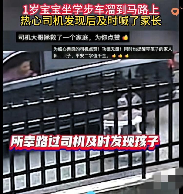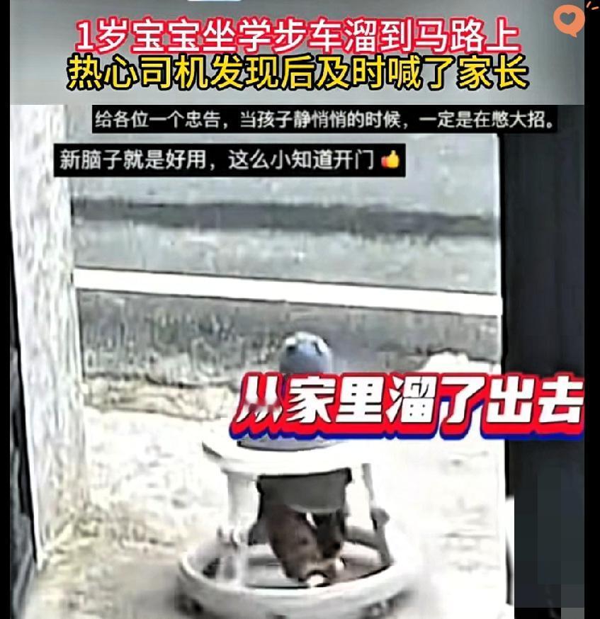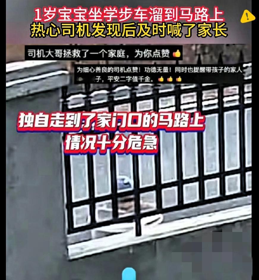 江西宜春这位家长的操作,真的别再重演了! 1岁宝宝坐学步车独自在院子里,居然踮着脚就打开了大门,直接冲到马路中间横冲直撞,想想都后怕。 幸好路过的大哥及时喊停,不然后果真的不堪设想。 很多家长总觉得“就忙一会儿”“在家门口没事”,却忘了学步期的孩子好奇心爆棚,行动力远比我们想象中快。 学步车本身就有安全隐患,再加上无人看护,简直是把孩子推向危险边缘。 监护从来不是“抽空应付”,而是时刻绷紧的弦。 《未成年人保护法》明确要求,未满八周岁的孩子不能处于无人看护状态,这不是规定,是底线。 好心大哥的一声呼喊救了一个家庭,也给所有家长敲了警钟。 你身边有没有见过类似的监护疏忽?如果是你,会怎么避免这种危险发生?