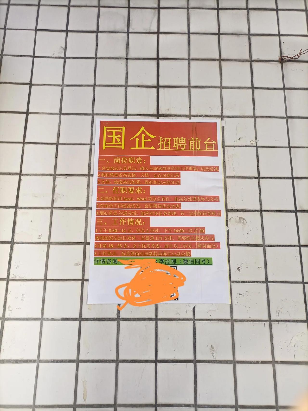 真是头次见,真的都不敢相信,国企也缺人。今天去玩,碰巧在一处墙壁上看到一张国企的招聘广告,虽然上面没有具体写明是招聘什么岗位,但从内容推断应该是文员岗位的,我不禁想,那么多人都想挤破头进国企,因为那里福利好,工资高,好留人,不应该缺人才是,没想到缺人缺到在马路边到外张贴这样的招聘信息,不得其解。