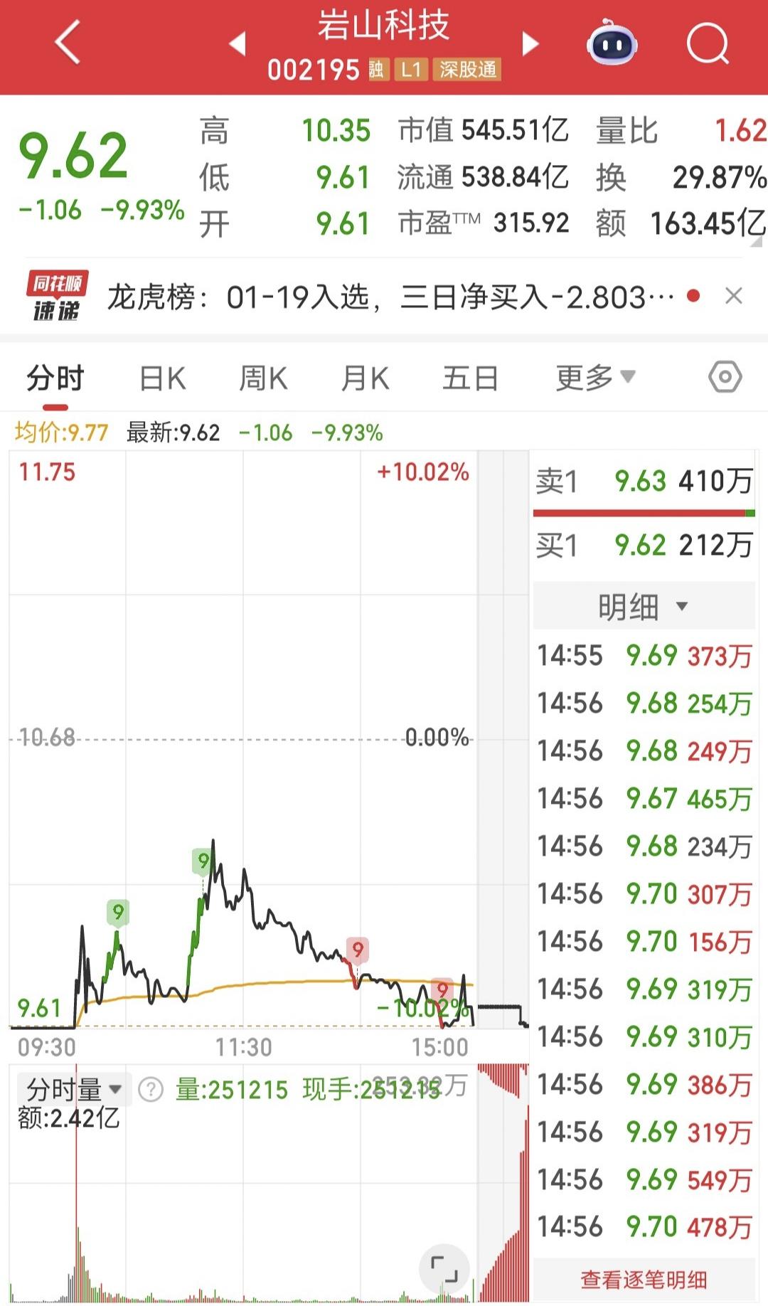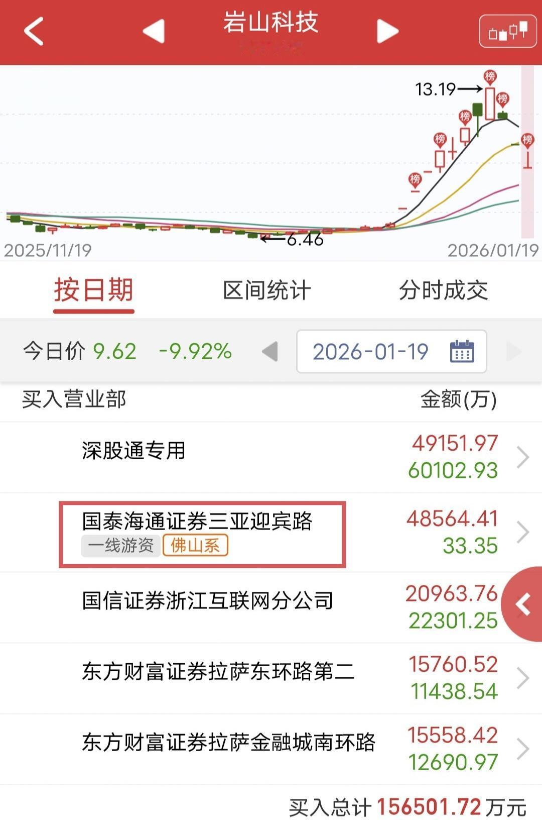 佛山系爆买4.8亿: 今天岩山科技终于开板放人。 盘后龙虎榜显示,佛山游资抄底4.8个亿,成为重要主导力量。 连杀几天,一字闷杀应该都要结束了吧。