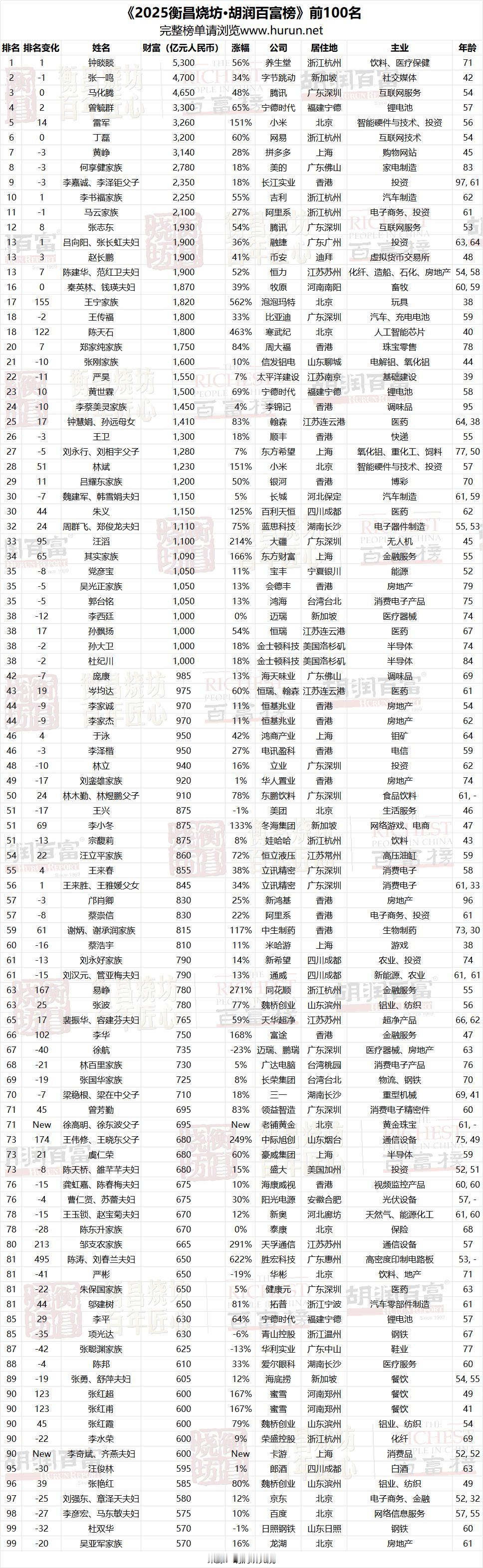 湖州十大富豪财富密码:从濒临破产到创造880亿财富的惊人逆袭! 湖州这座位于太湖南岸的城市,一度是长三角地区的“小兄弟”。 如今却拥有一个令人惊讶的富豪群体:十位白手起家的企业家,总财富高达880亿元。 是什么让这片土地孕育出如此多的商业奇迹?让我们一探究竟。 最新《2025胡润百富榜》中,湖州十位企业家榜上有名。 这些人的故事构成了一部湖州民营经济发展史。从电池制造到特种钢材,从环保板材到生物医药,他们覆盖了多个实体经济领域。 这十位企业家按财富排名分别是:张天任(天能股份)、许树根(鼎力机械)、姚金龙(兆龙互连)、高兴江(永兴材料)、胡赓熙(我武生物)、何金辉(中力机械)、方隽云(洁美科技)、周志江(久立特材)、单建明(美欣达集团)和丁鸿敏(兔宝宝)。 值得注意的是,姚金龙和何金辉都是首次登上这份榜单的新面孔,而许树根则以150亿元的身价位列全国第443名。 单建明的故事从一个破旧军营开始。1978年,年仅18岁的他入伍成为一名新兵,在警卫连经历了严格的军事训练。谁能想到,这位曾在风雨中站岗的年轻士兵,未来会成为一个商业帝国的缔造者? 1980年退役后,单建明进入湖州印染厂工作。经过12年的历练,他决定辞职下海。创业初期,单建明面临的困境几乎是绝望的——14万元的启动资金在90年代初堪称天文数字。 他跑遍亲朋好友,一笔一笔地凑,最终在湖州东郊织里镇大潘兜村的桑田里,建起了只有四台二手拉绒机的小厂。 如今的美欣达集团总资产已超200亿元,拥有超过12000名员工。2025年,单建明以59亿元的身价位列《胡润百富榜》第1240名。 在单建明的管理团队中,不乏昔日的战友。美欣达集团及下属公司目前已吸纳了数百名退役军人就业,其中工龄最长的达到26年。 丁鸿敏的创业之路同样充满传奇色彩。1992年,29岁的他以“木”为基,创办德华装饰材料有限公司,这便是兔宝宝的前身。当时的他面临的是“三无”困境:无资金、无资源、无人才。 为解决技术难题,丁鸿敏不得不“四顾茅庐”,终于请到了上海的人造板行业专家担任技术顾问。他的努力没有白费,企业投产后第一年就实现销售收入2200多万元。 2005年,兔宝宝在深交所上市,成为行业内首家上市企业。如今,兔宝宝品牌在全国范围内拥有巨大影响力,去年集团实现主营业务收入229.33亿元。 周志江的不锈钢帝国始于1987年,当时他带领三十多个农民在棚屋里创办了湖州金属型材厂。38年过去了,这家小厂已成长为不锈钢管材领域的全球领导者。 2025年9月,周志江做出一个令人瞩目的决定——通过自己100%持股的公司,在二级市场增持久立特材120万股,交易总金额达2636.9万元。 这次增持明确传达了实际控制人对公司未来发展的信心。截至目前,久立特材的市值已达到222亿元。 2025年12月31日,兆龙互连向特定对象发行的3007万股A股股票在深圳证券交易所上市。这次发行使公司总股本增加到3.43亿股,标志着姚金龙的数据线缆王国进一步扩张。 64岁的姚金龙保持着旺盛的企业家精神。2026年1月14日,他主持召开了公司第三届董事会第十五次会议,审议通过了包括调整募集资金投资项目在内的多项重要决议。 根据最新公告,兆龙互连预计2026年度将与关联方发生不超过2615万元的日常关联交易。公司的泰国子公司也开始在募投项目中发挥作用,显示出国际化布局的加速。 许树根的创业故事与“高度”相关。2005年,他看准国内基建行业迅猛发展的机遇,创办鼎力机械,专门生产高空作业平台。 如今,鼎力机械已成长为国内第一、全球前三的高空作业平台制造商。根据公司资料,许树根持有公司2.305亿股股份,是绝对的实际控制人。 在鼎力机械董事会中,许树根担任董事长,他的亲属也担任要职,形成了稳定的家族管理团队。这种结构在湖州民营企业中相当常见,既是优势也是特色。 胡赓熙代表的是另一类湖州企业家——高学历技术型创业者。这位先后毕业于浙江大学、中科院和美国麻省理工学院的科学家,在2002年选择到湖州德清创办我武生物。 我武生物的成功证明,科技创新可以成为湖州民营经济的新引擎。胡赓熙不仅创造了75亿元的财富,更为湖州带来了高端的生物医药产业。 湖州企业家的成功源于他们能够在一米宽的地方挖出一公里深的专注精神。从军营到商场,从实验室到生产线,从破产边缘到行业龙头,他们的故事构成了这个时代最动人的创业史诗。 也许在不久的将来,湖州还会涌现出第十一位、第十二位登上富豪榜的企业家。这片土地似乎已经找到了创造财富的密码——既有对实业的执着坚守,又有对创新的不懈追求。 对此,你想说点什么呢?