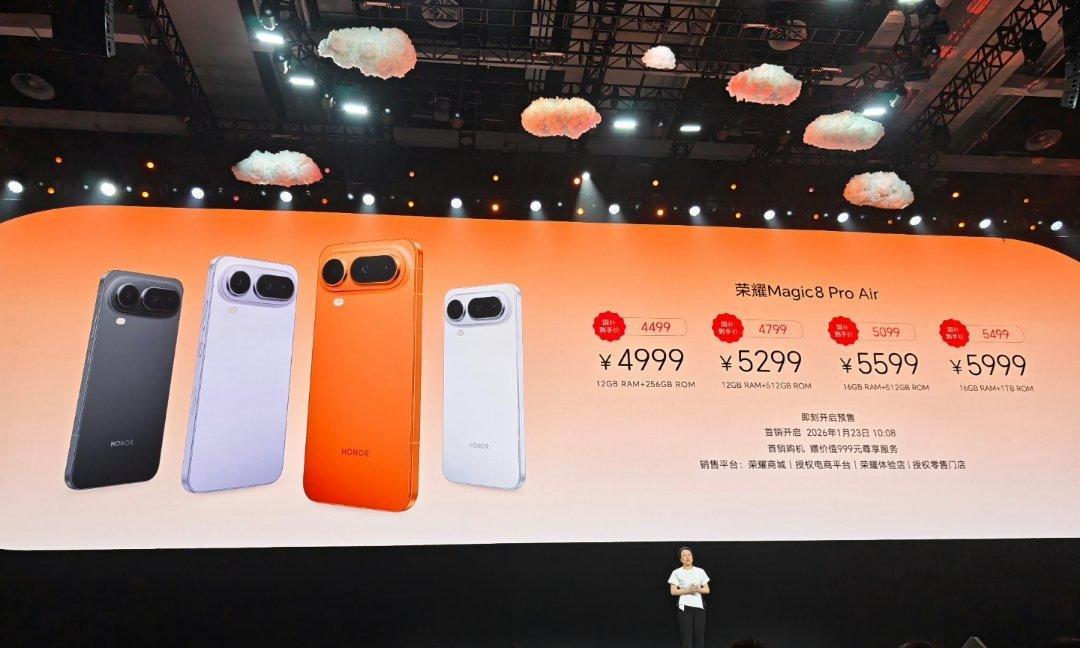 Air手机界来了个真Pro荣耀magic8 pro air荣耀发布会 跟iPhone Air相比,荣耀Magic8 Pro Air的优势是双扬声器,主摄长焦超广角三摄的可玩性更强。其它的优势基本上就不明显了,或者说感知不强,比如更大的电池,考虑到苹果的能耗控制,非重度使用(拍照游戏居多)的话续航差距会很小。sim卡看着是问题,实际上问题不大,到底有几个人隔几天就要换一次sim卡呢?如果4999起的话,很多人就会想为什么不买个iPhone17呢?iPhone17虽然没有那么轻薄,但是跟Pro机型相比还是轻很多的。质感上玻璃背板还是比玻纤好。喜欢iPhone Air的人,应该不会看荣耀Magic8 Pro Air,当然后者的目标受众可能也不会看前者。PS:果然4999起步。老张聊数码