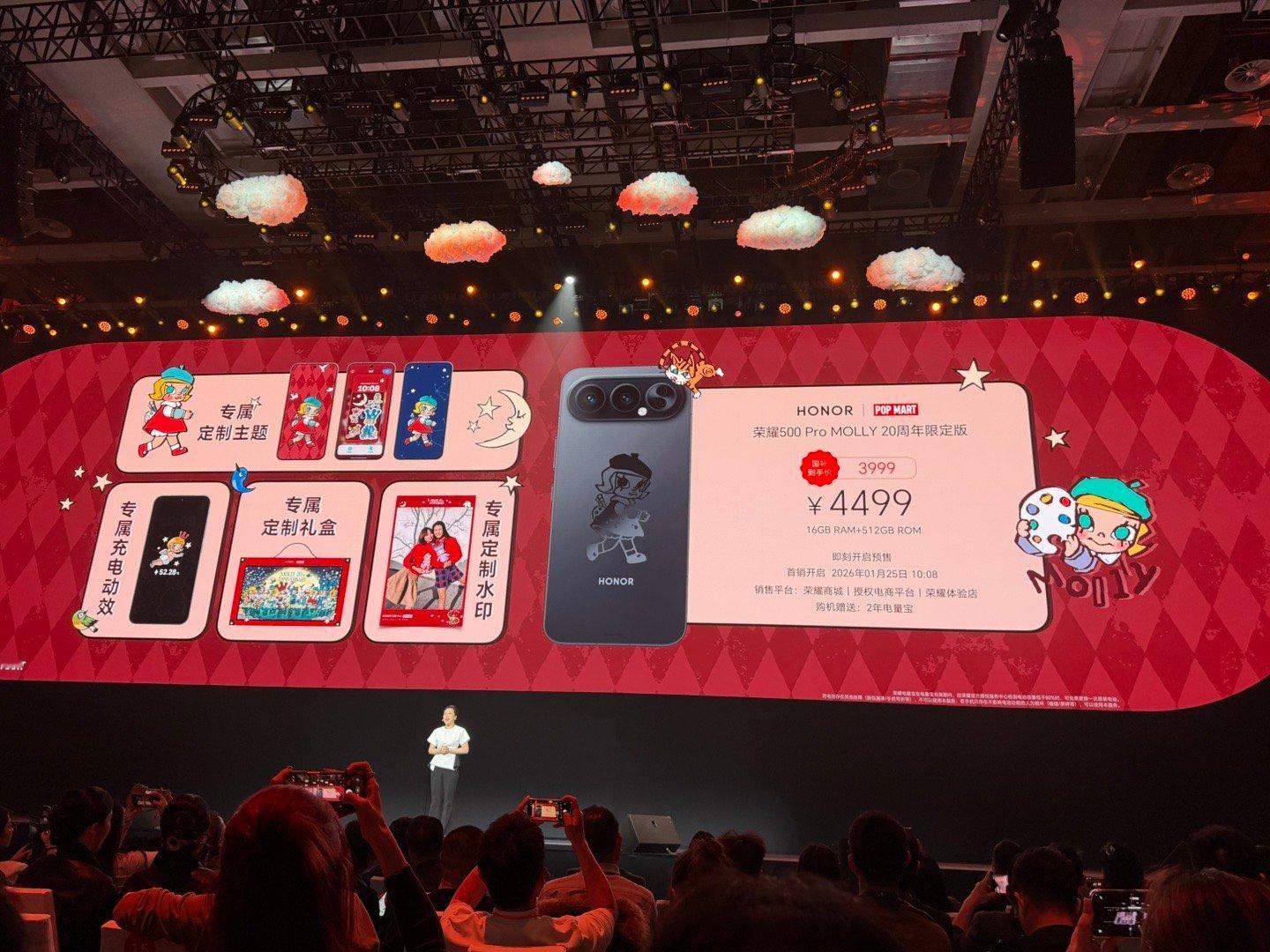 荣耀500ProMOLLY20周年限定版价格公布起售价为4499元,国补后价格为