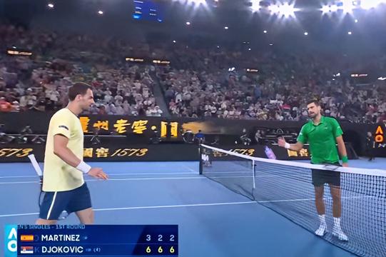 德约澳网100胜!! 2026澳网男单首轮,德约6-3、6-2、6-2横扫马丁内斯,收获个人第100场胜利!!神[赞]2026澳网