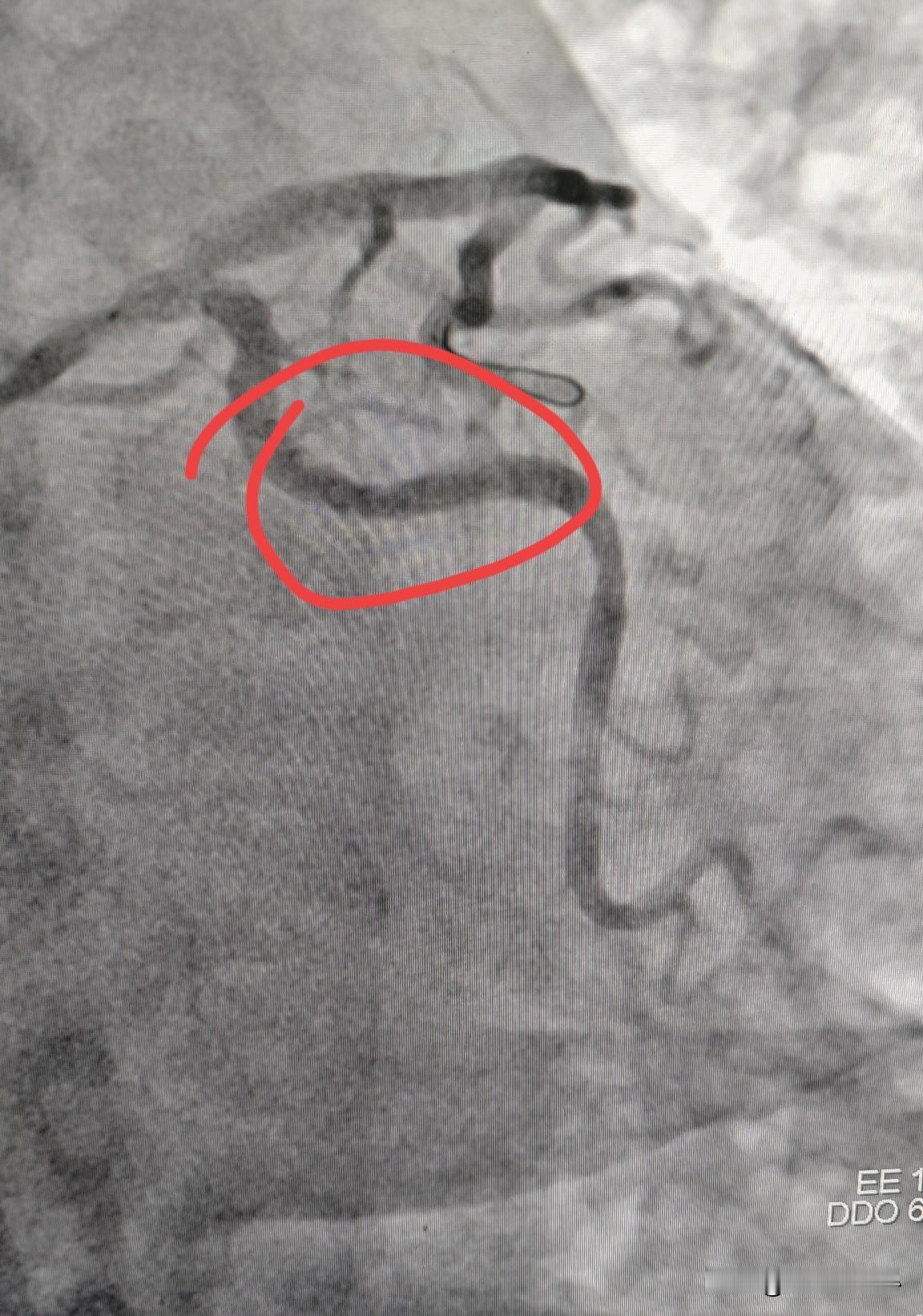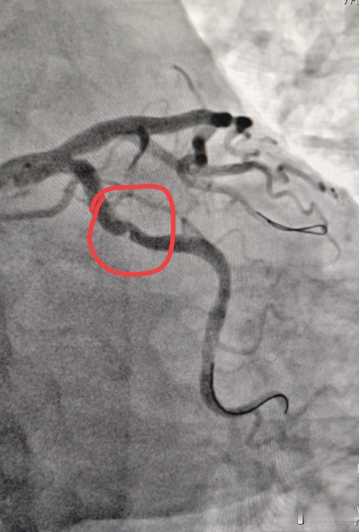 冠状动脉痉挛什么样?快来直观看一下冠状动脉痉挛。 这是一个做冠脉支架的患者,在导