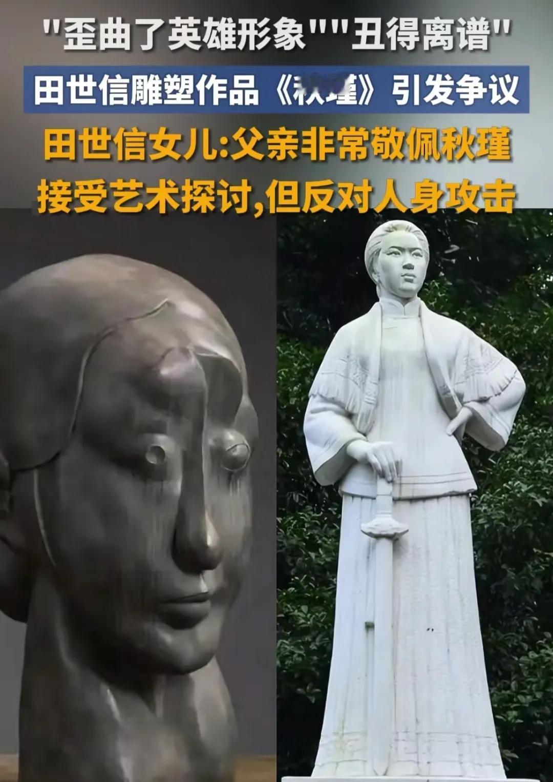 秋瑾雕塑作者女儿有回应了!作者女儿表示接受艺术探讨不接受人身攻击!作者很佩服英雄秋瑾,但是他的作品不是写实作品,写实作品谁都能做,他雕刻的是秋瑾被束缚的精神与抗争!所以不能用写实与否来评价雕塑。老爷子年纪大了,艺术当年探讨接受,人身攻击不接受。
