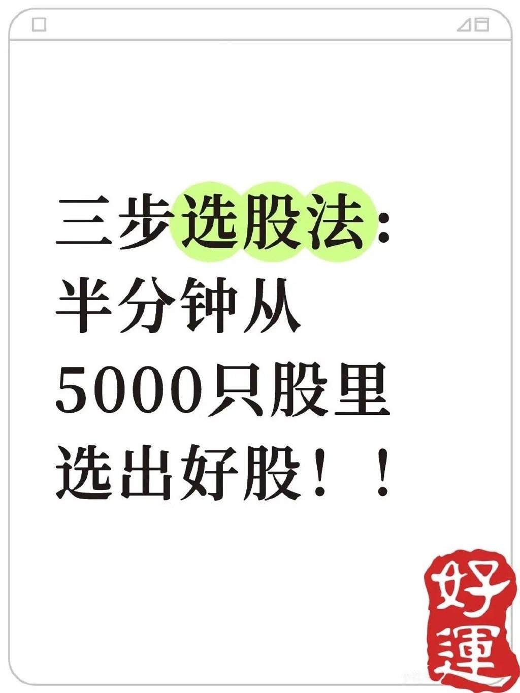 3步选股法,您知道吗?