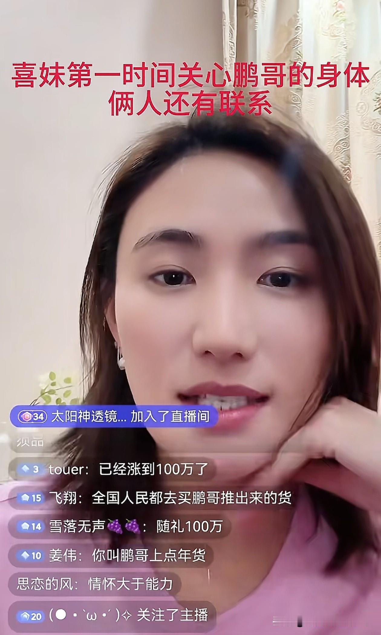 我有种强烈的预感! 海哈金喜可能后悔和李亚鹏离婚了, 近日,海哈金喜直播时谈起李亚鹏,她先是替鹏哥解释了这两天没有直播的原因,说孩子他爸感冒了,嗓子疼得说不出话,让网友不用担心,言语中充满了关心和心疼! 更有意思的是,看到弹幕上问她什么时候复合,要来随礼,海哈金喜也没有生气,反而微笑着说,谢谢大家的关心,她现在挺好的,如果真有那么一天,不用给红包也可以来参加婚礼,随后还把女儿画的全家福拿出来给网友分享。 这是不是说明虽然俩人离婚了,但还是会经常联系,会互相分享生活近况,而且因为有儿女这个牵挂,说不定过不了多久,等李亚鹏处理嫣然医院的困境,俩人真可能破镜重圆,您觉得呢?