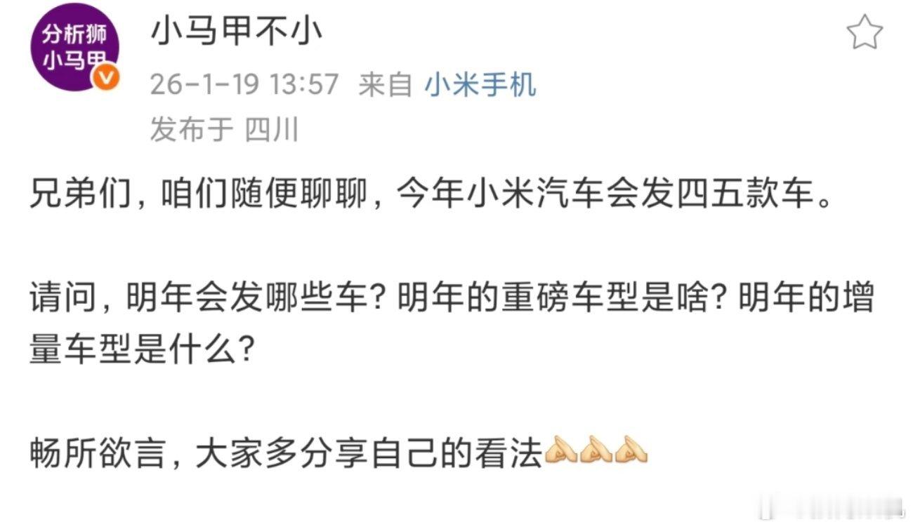 小米今年要出四五款新车?SU7,SU7L,YU7GT,YU7看来是保底了,不知道加长款和SU7 2026款是一起发还是分开发。