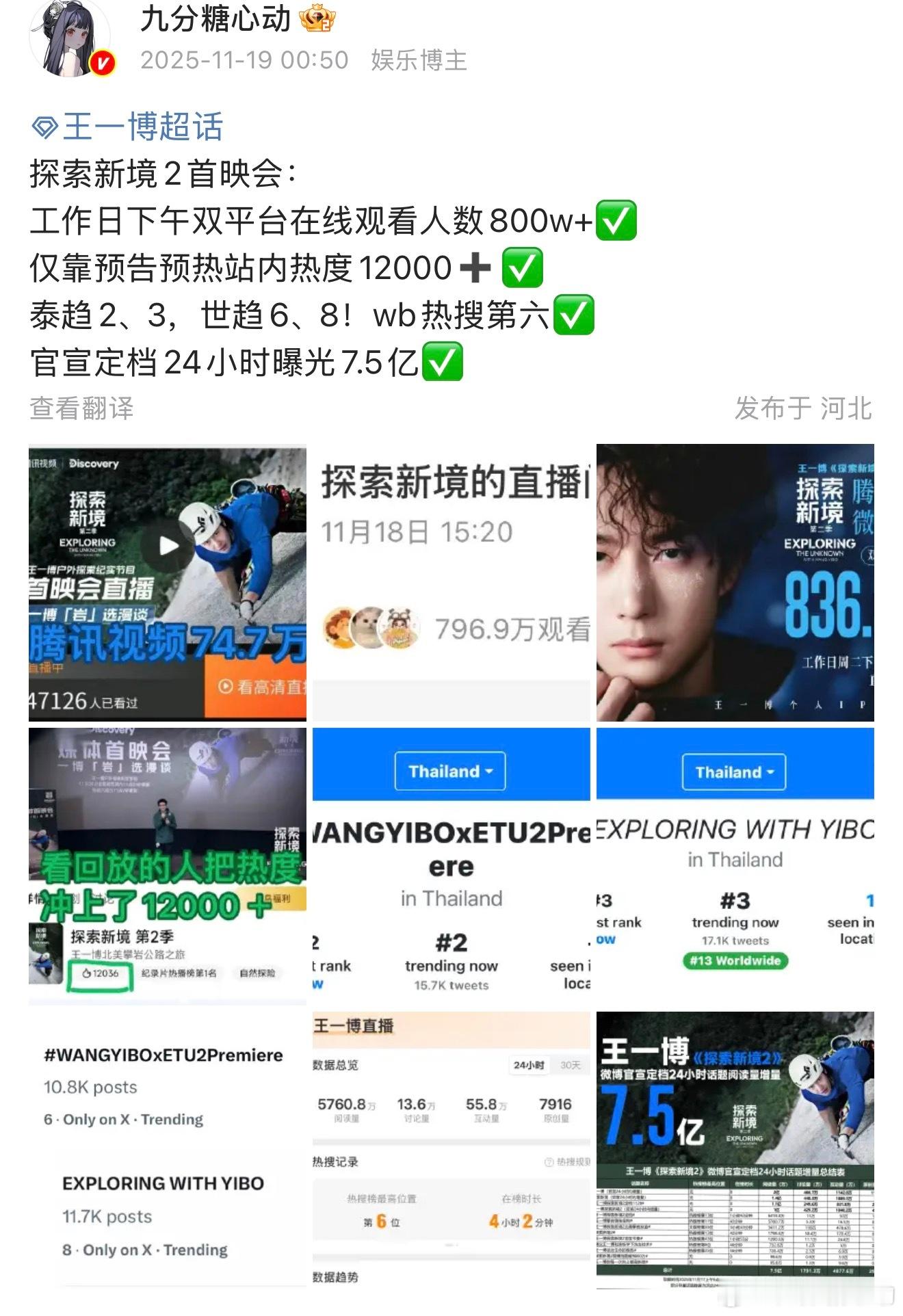王一博 探索新境2官方战报来了其实世趋还有个更高的首映会,世趋6、8!⬇️网页链接