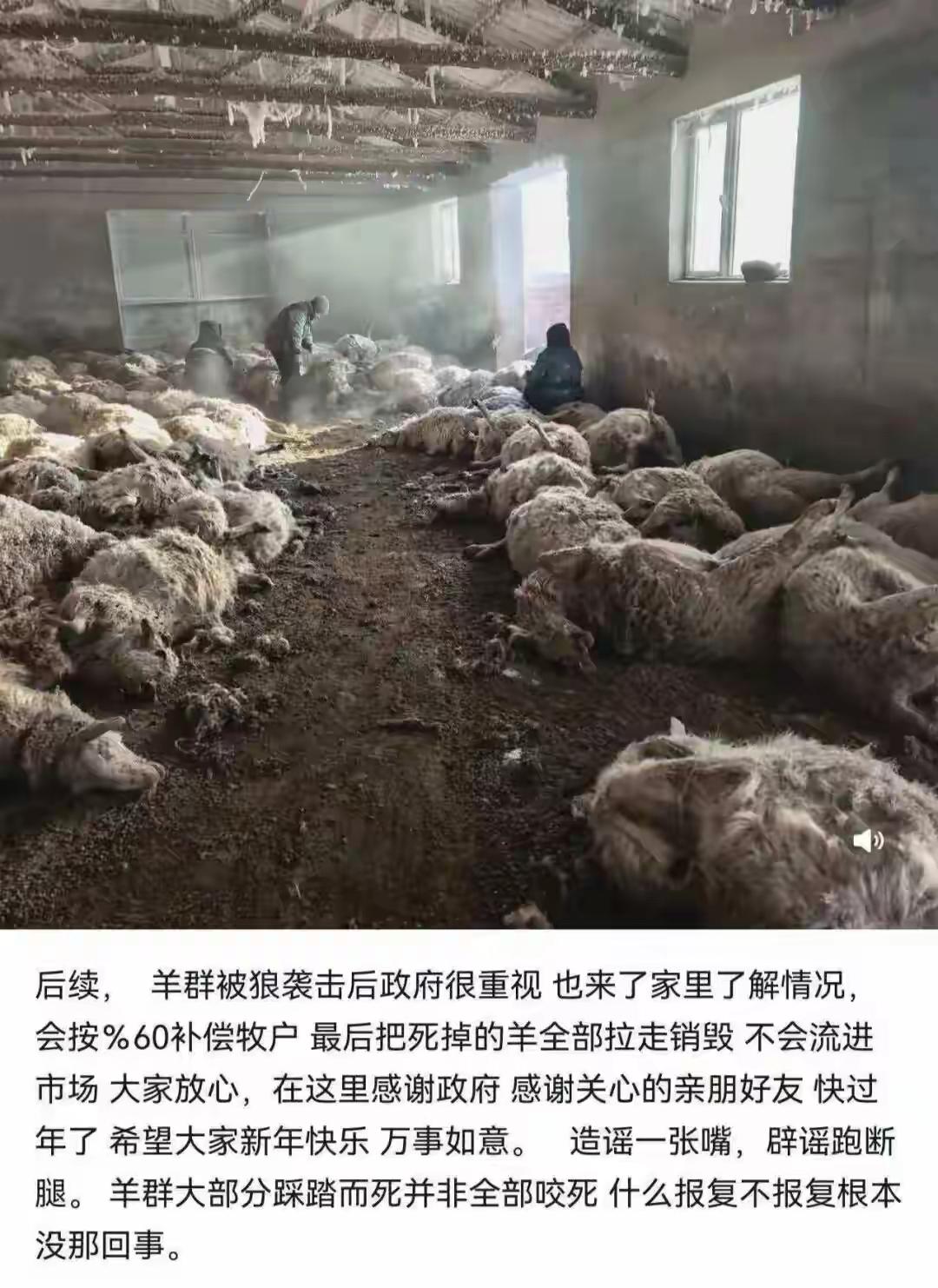 呼伦贝尔狼群夜袭羊圈致200多只羊死亡,背后细节比网传的更真实!最初说狼咬死200多只羊其实不严谨,实际是咬死一部分,剩下的全是羊受惊踩踏致死,网传的狼群报复说法更是子虚乌有,还有些人蹭流量故意站狼群那边,属实没必要。要知道这些羊对牧民来说太重要了,几乎都是等着二月接羔的,一下损失这么多,换谁都心疼。好在当地政府很重视,按内蒙古的补偿办法,会按市场价60%赔付,死羊也会全部销毁做无害化处理,杜绝流入市场,这份处理态度真的让人安心。