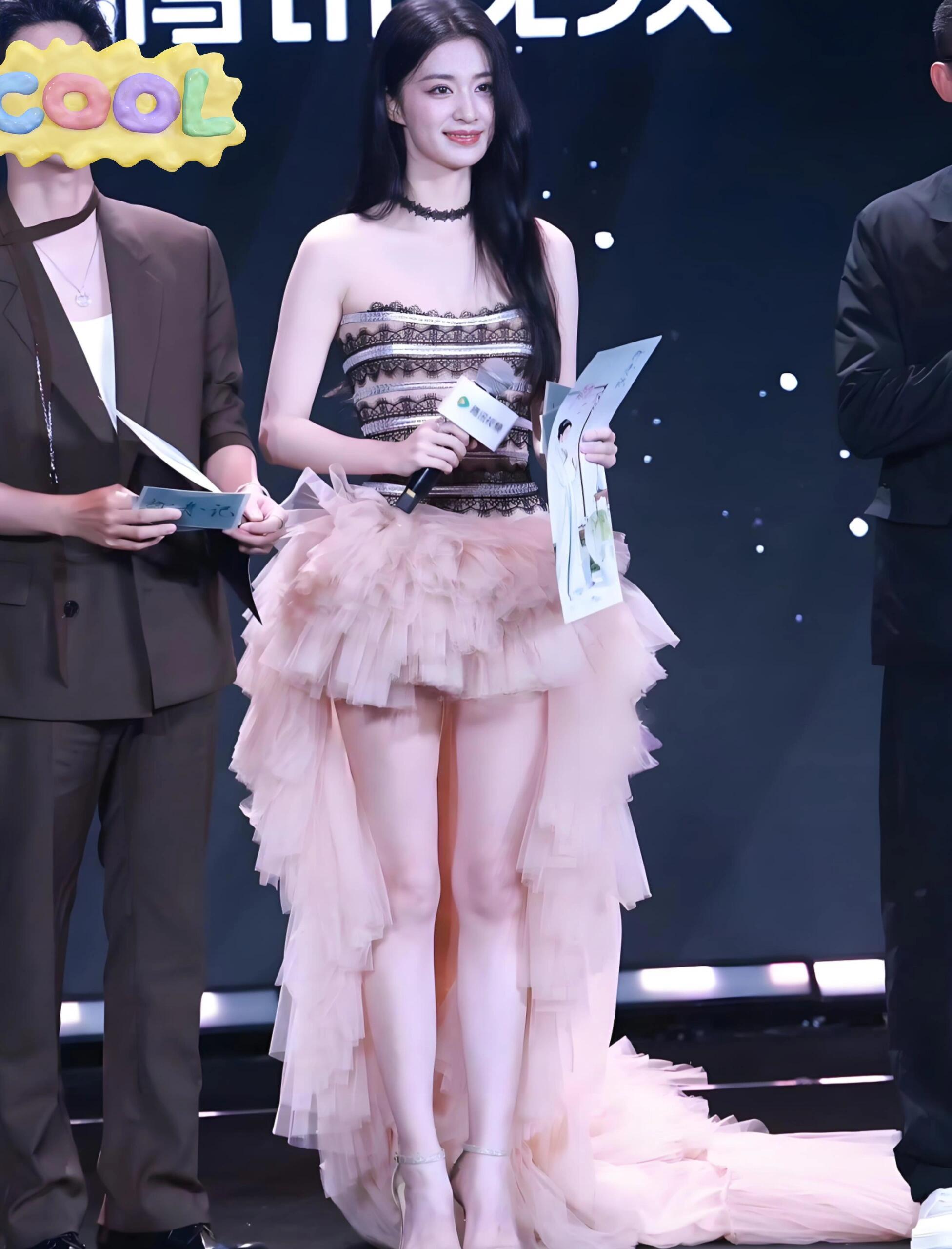 唐嫣华鼎奖红毯生图,性感裹胸长裙造型!