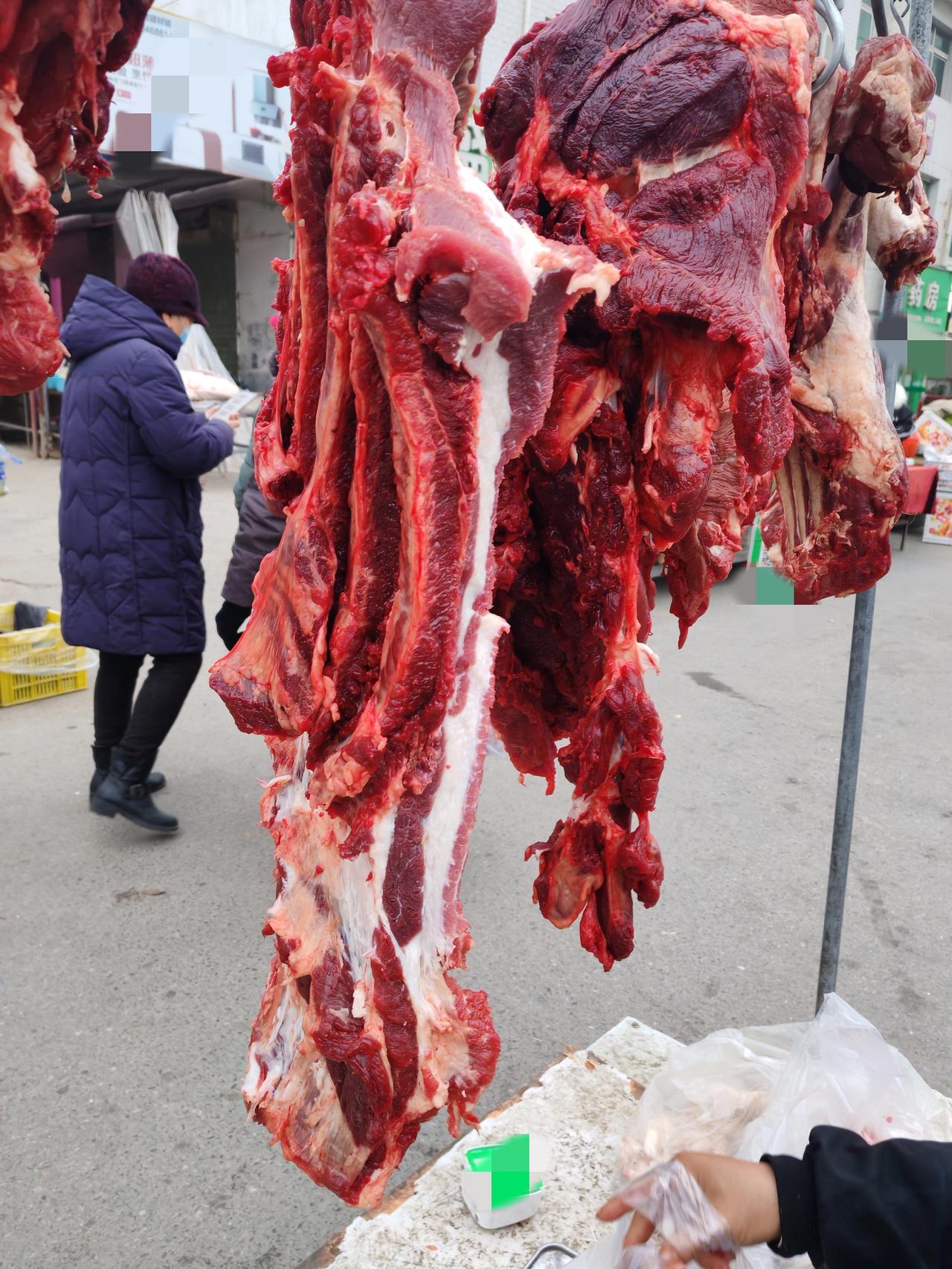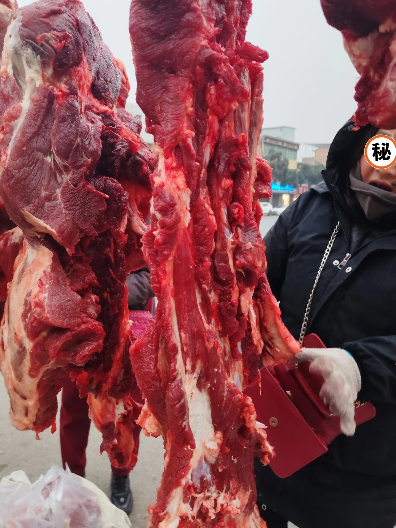 心里一直有个疑惑 1月20日,这是我前天拍摄到的两张图片,看到流动摊卖牛肉又来了,还是老价钱,牛腩和肋条肉25元1斤,牛腱肉30元1斤,价格很温和,比店里便宜4元左右。 我没买过这家肉,对流动摊的肉品一直保持戒心,基本都在清真店里买,但我看这个流动摊上买肉的人不少,以前我拍过图,评论区网友有人说是猪肉,也有人说是马肉。 说是猪肉吧,这个纹理不像,哪有那么大的猪,而且颜色也不对,猪肉颜色偏浅,肉质纹理没有这么粗。 至于马肉,我没吃过,但我在网上搜了一下,马肉也并不便宜,20多一斤呢,如果冒充牛肉,还不如直接说是马肉。如果真是牛肉,又卖得便宜,心里直打鼓,不敢贸然下手。 长期卖牛羊肉的朋友,帮忙看看,这到底是什么肉?牛肉价格